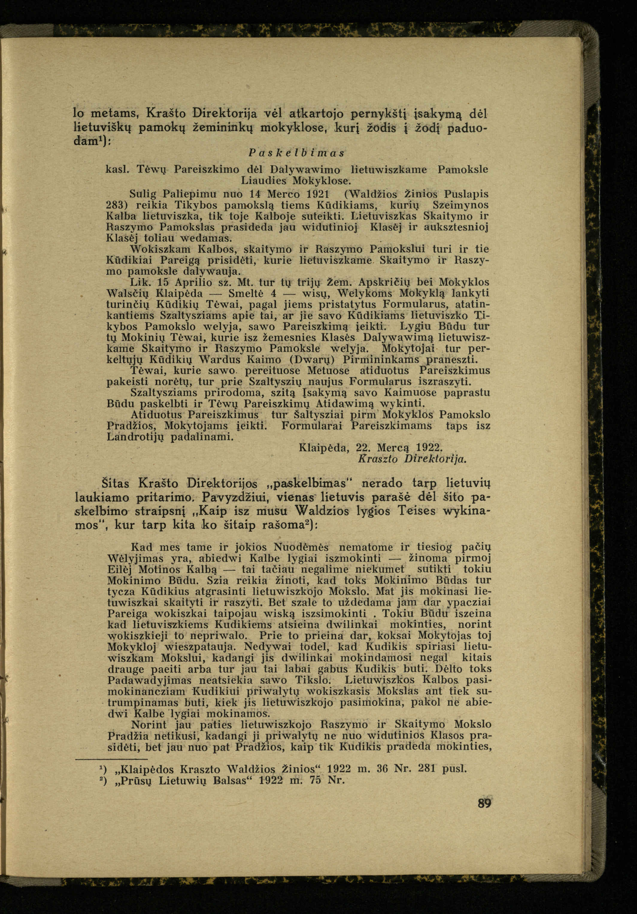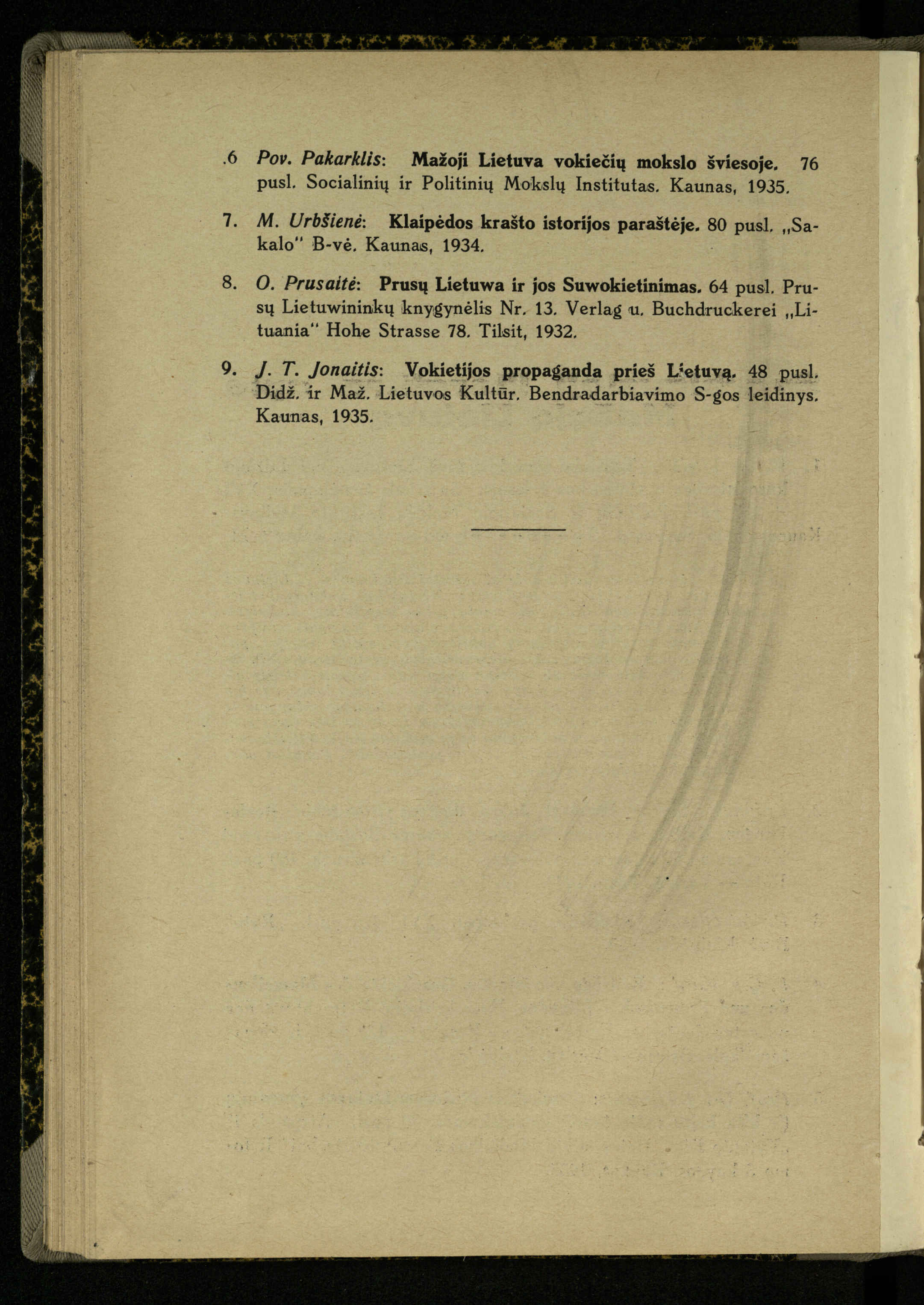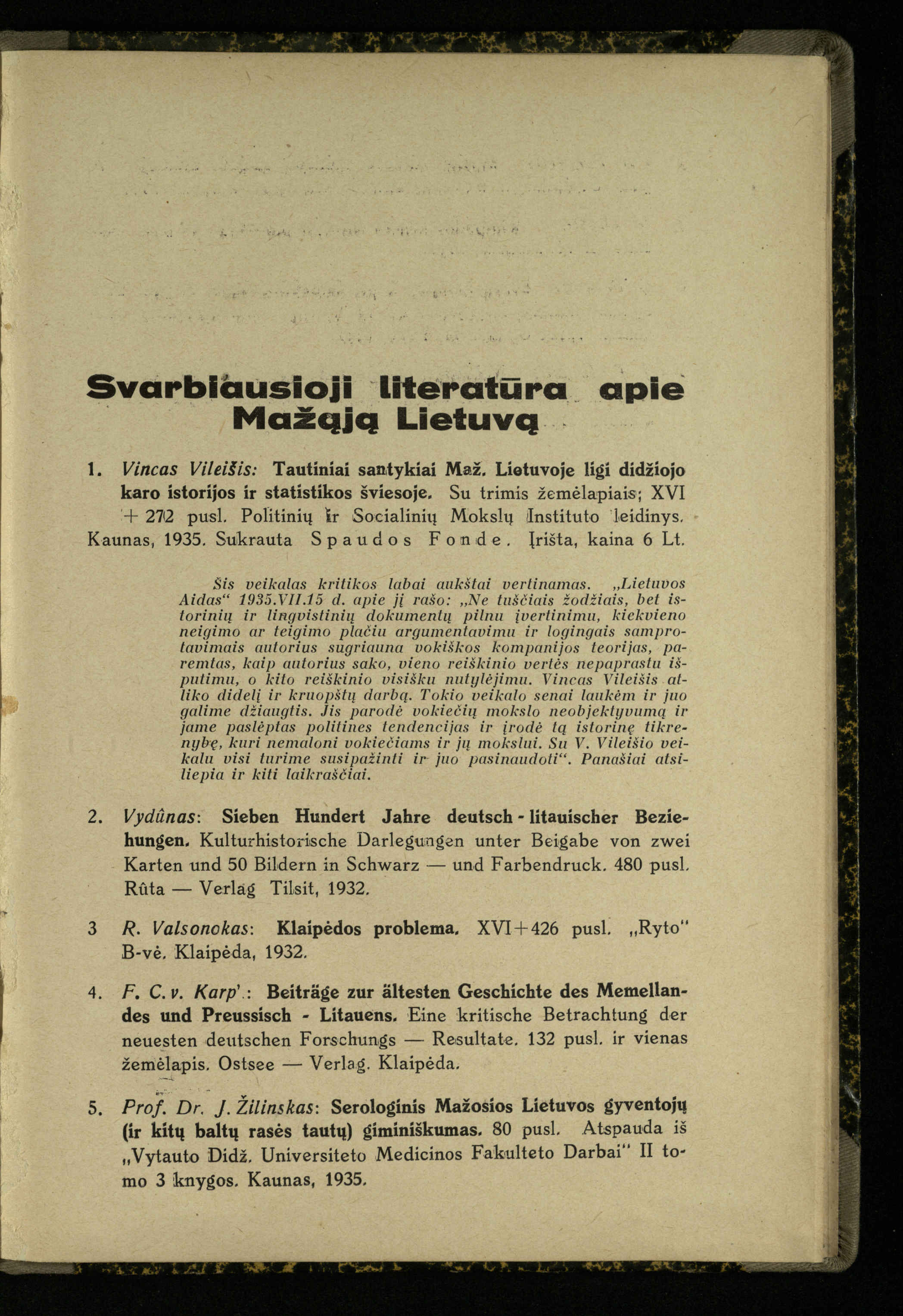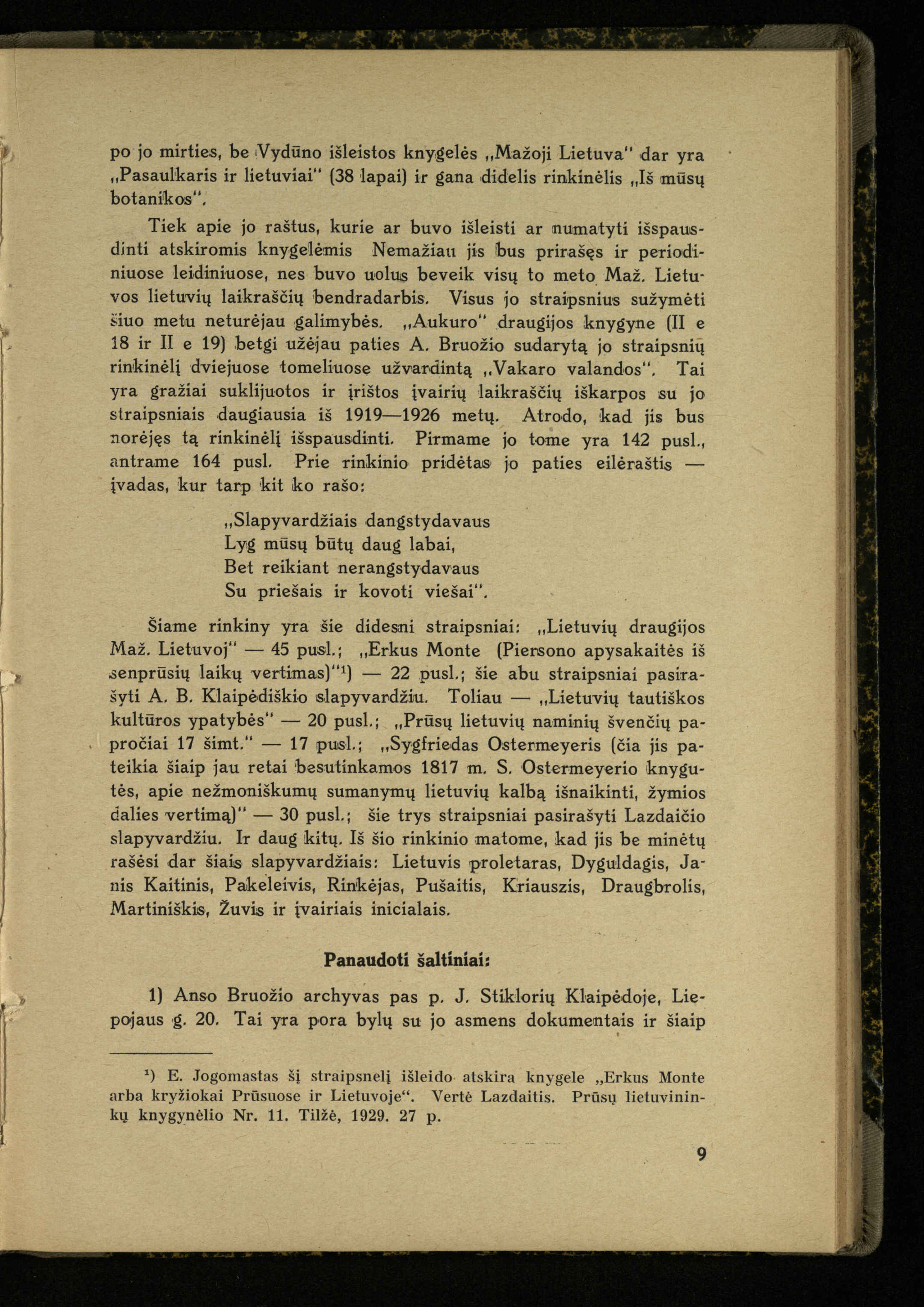 Mažosios Lietuvos mokyklos ir lietuvių kova dėl gimtosios kalbos / Ansas Bruožis; redagavo Vincas Vileišis. – Kaunas: Didž. ir Maž. Lietuvos kultūr. bendradarbiavimo s-gos Finansų m-jos tarnautojų skyriaus leidinys, 1935. – 94, [2] p.