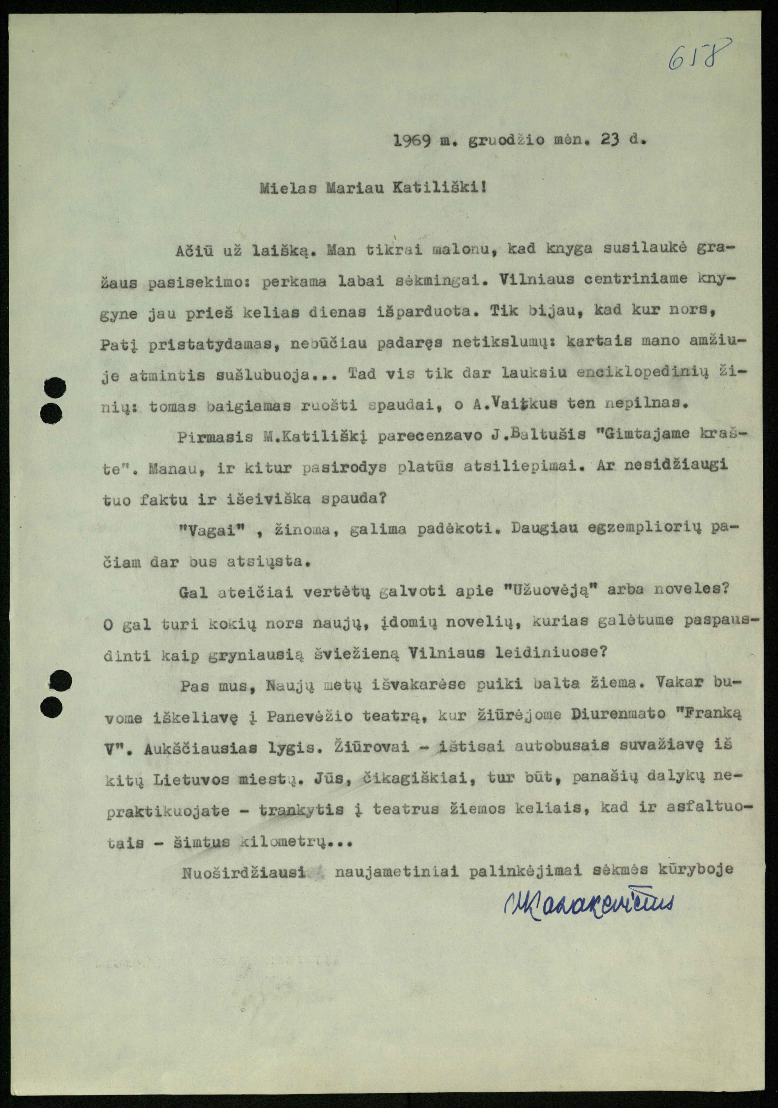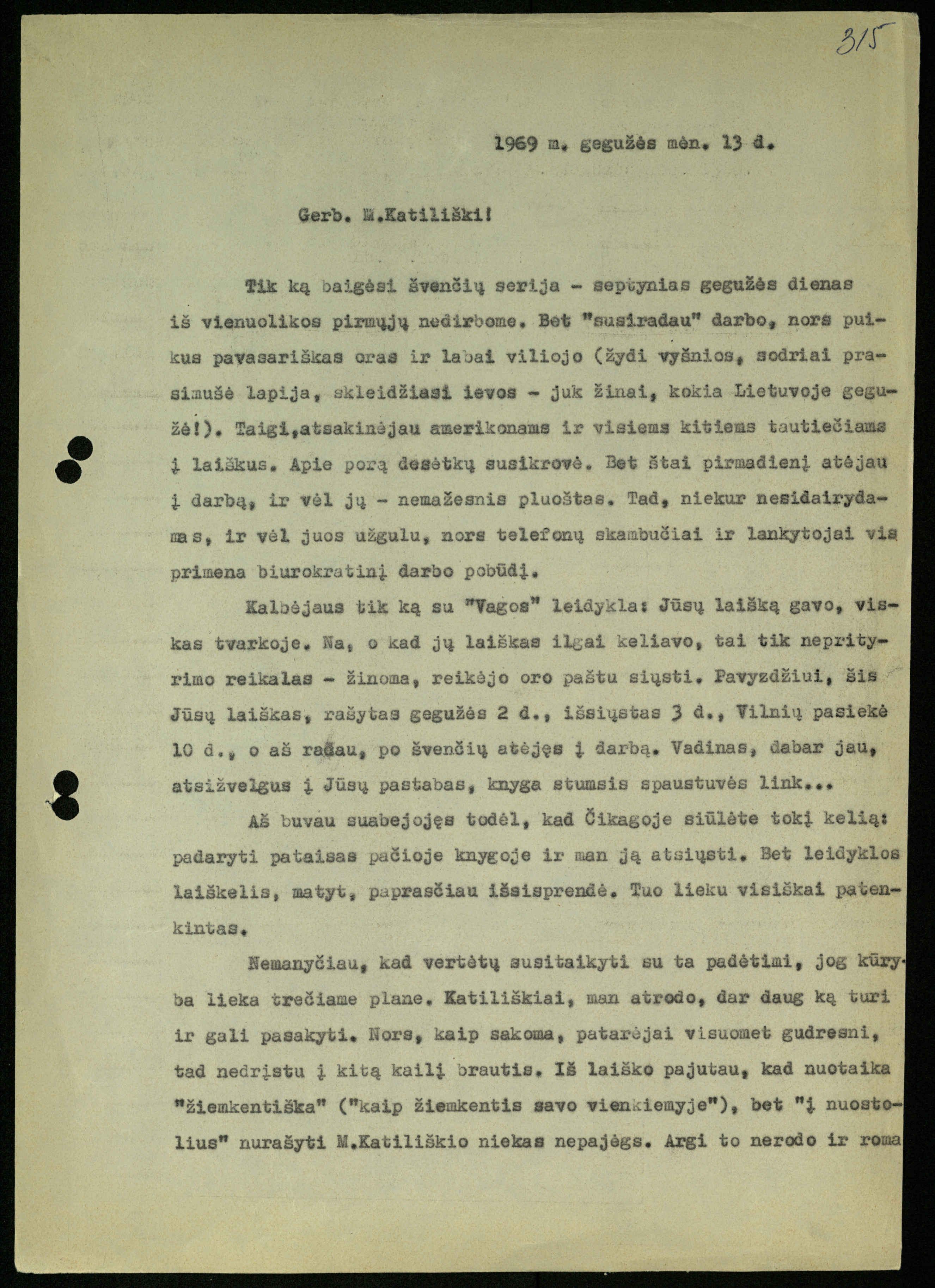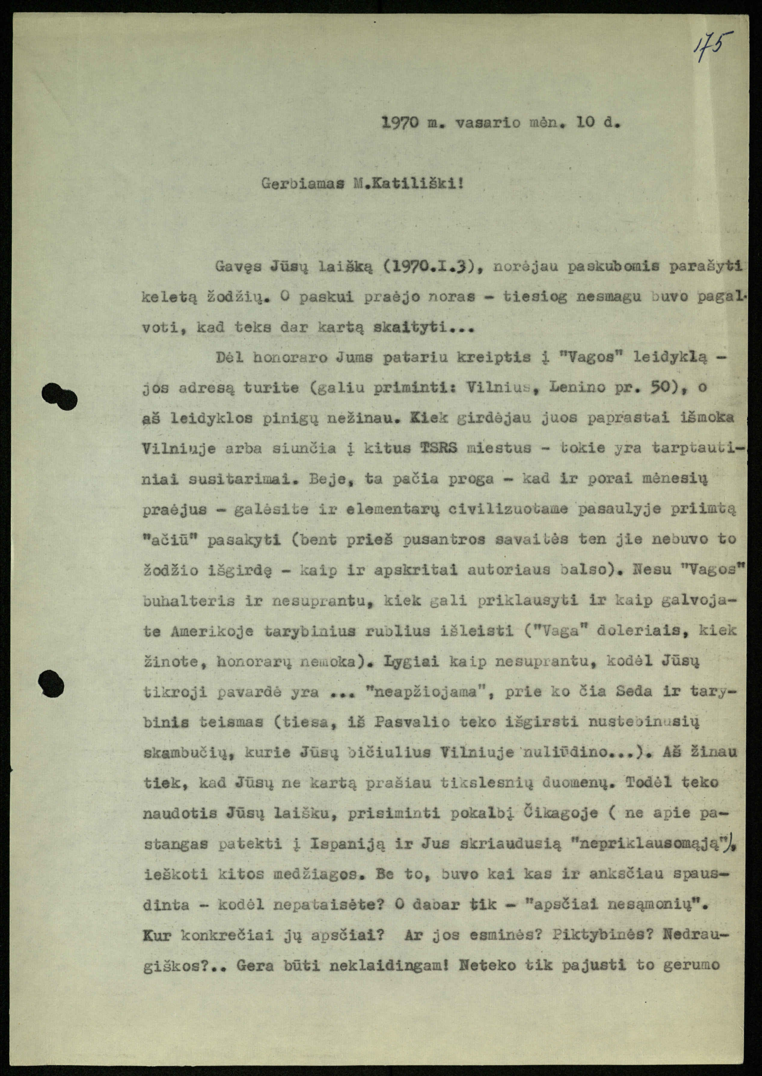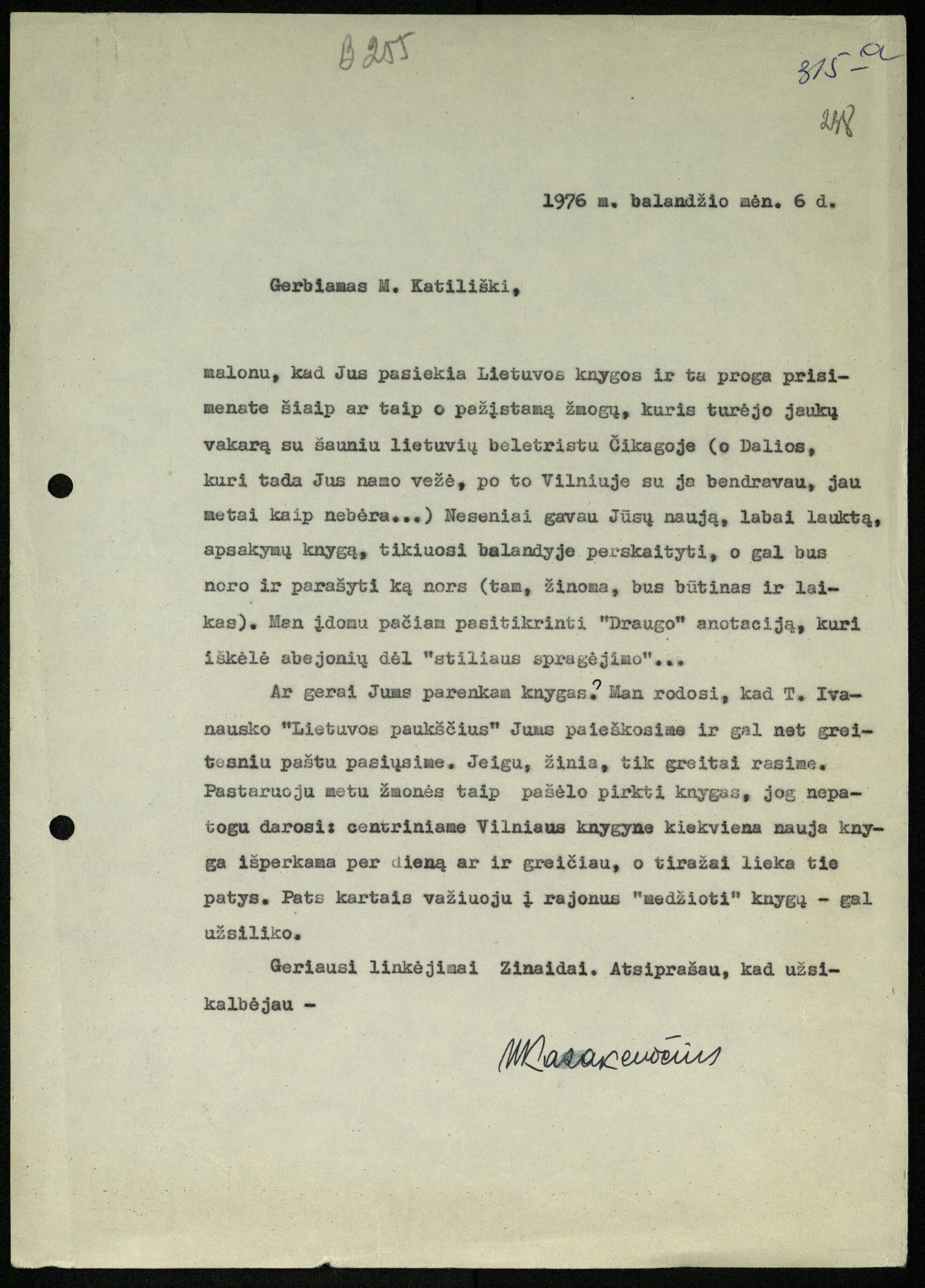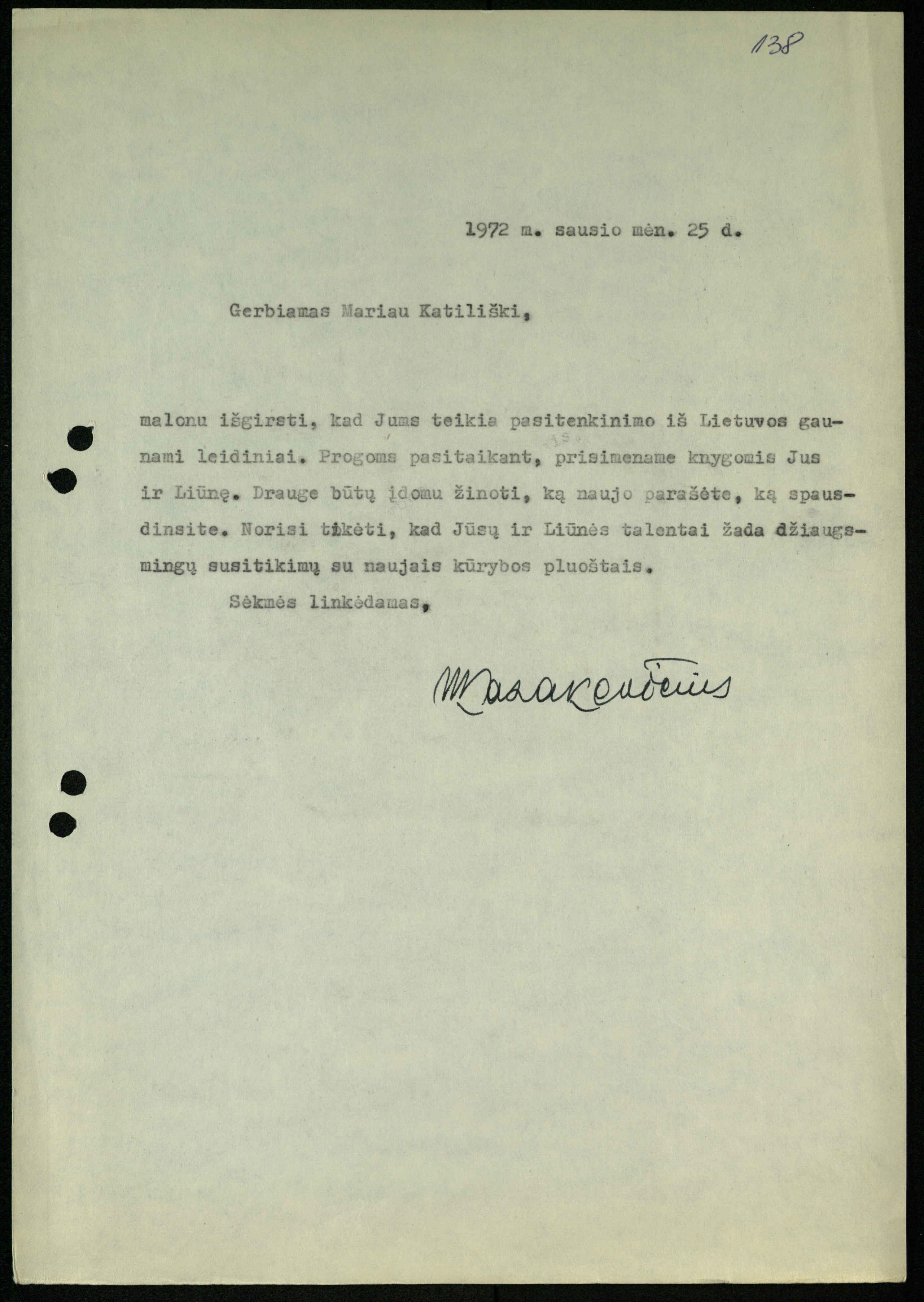 Žurnalisto Vytauto Kazakevičiaus ir rašytojų Mariaus Katiliškio, Zinaidos Nagytės-Katiliškienės korespondencija. 1966–1984 m.