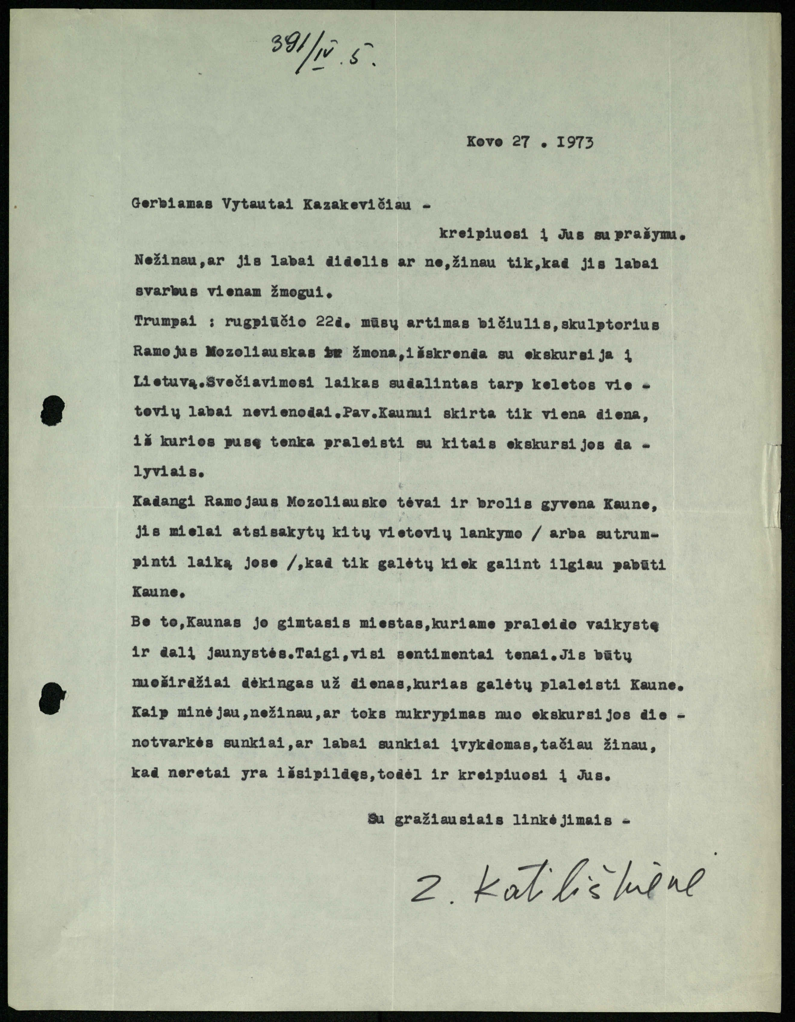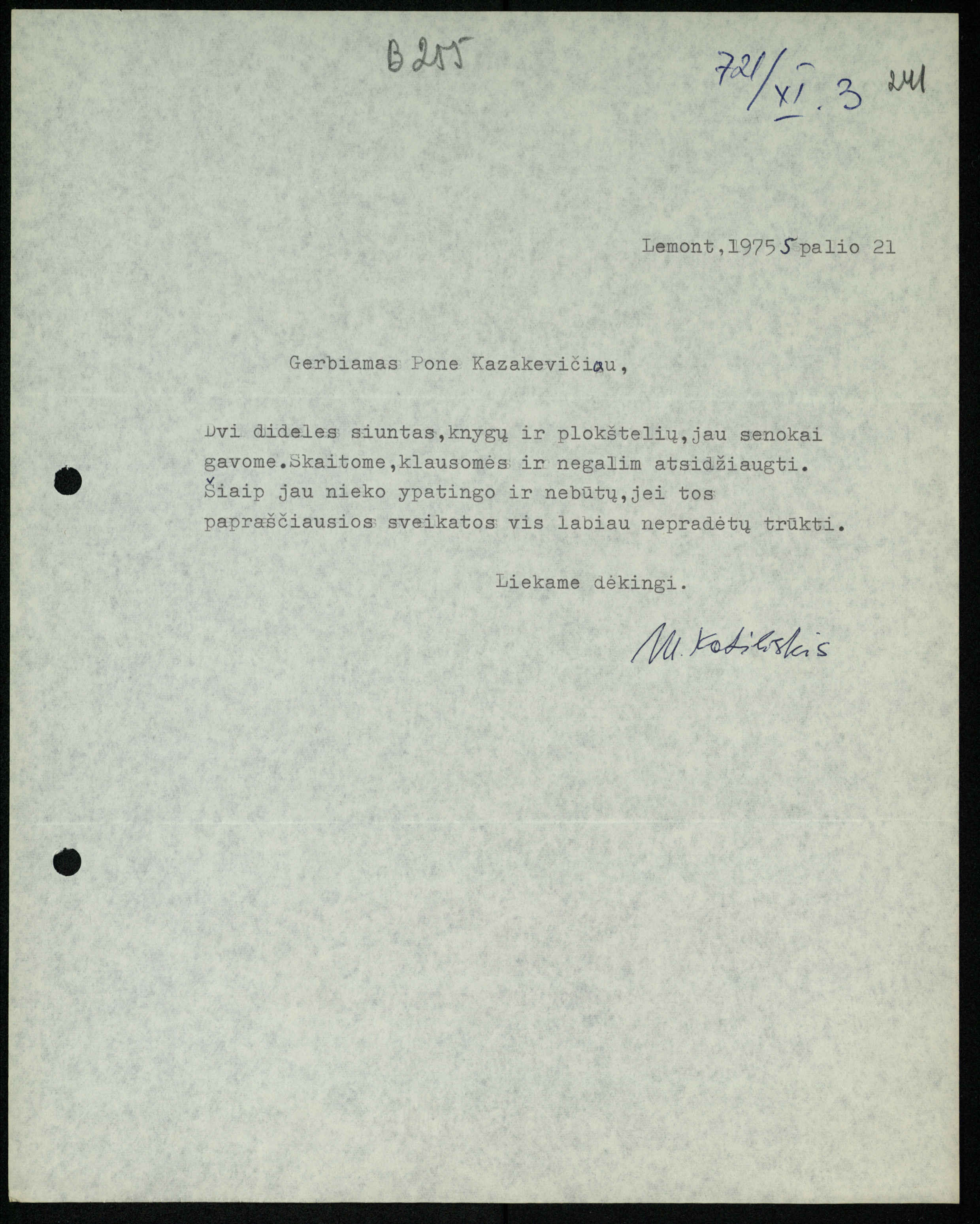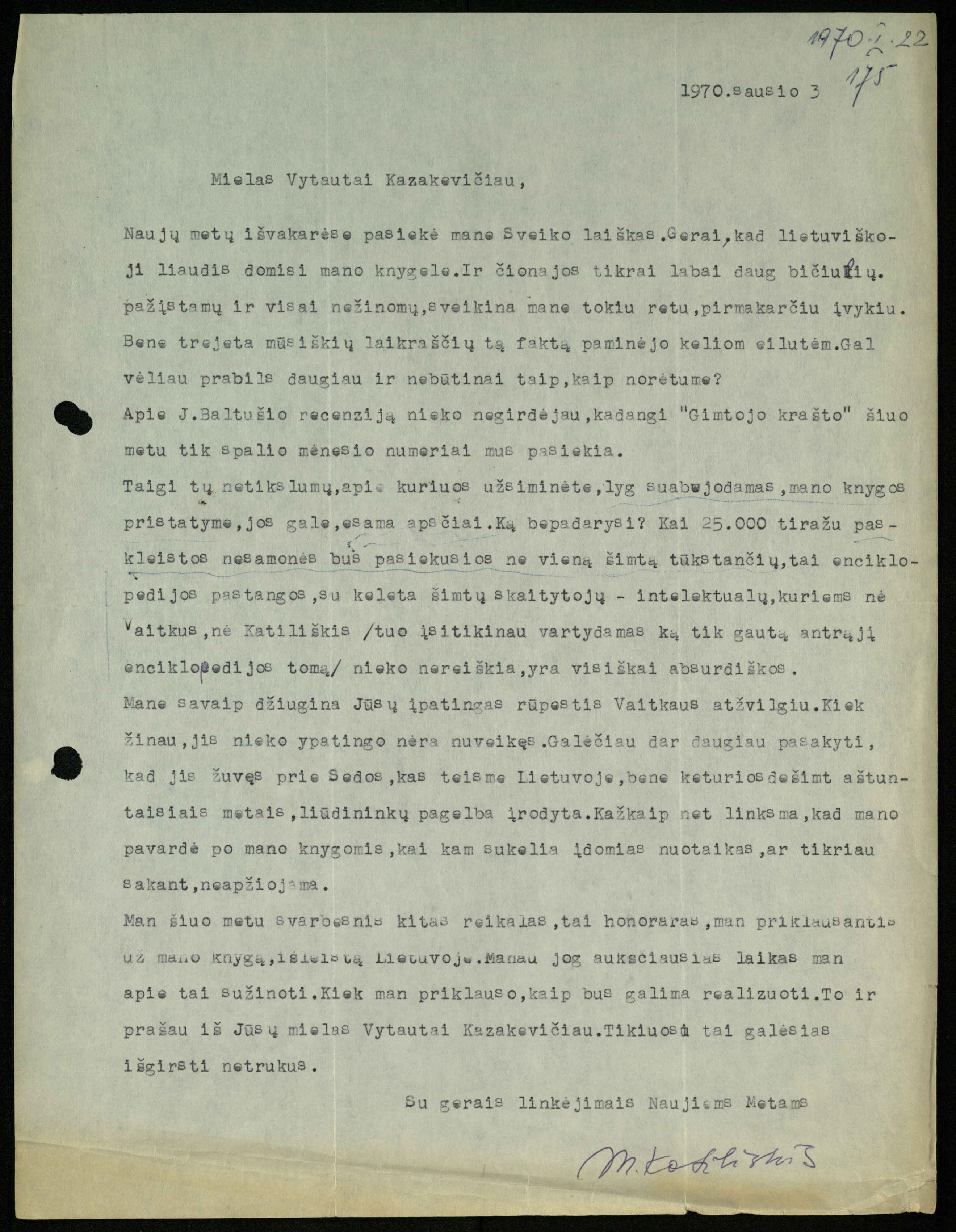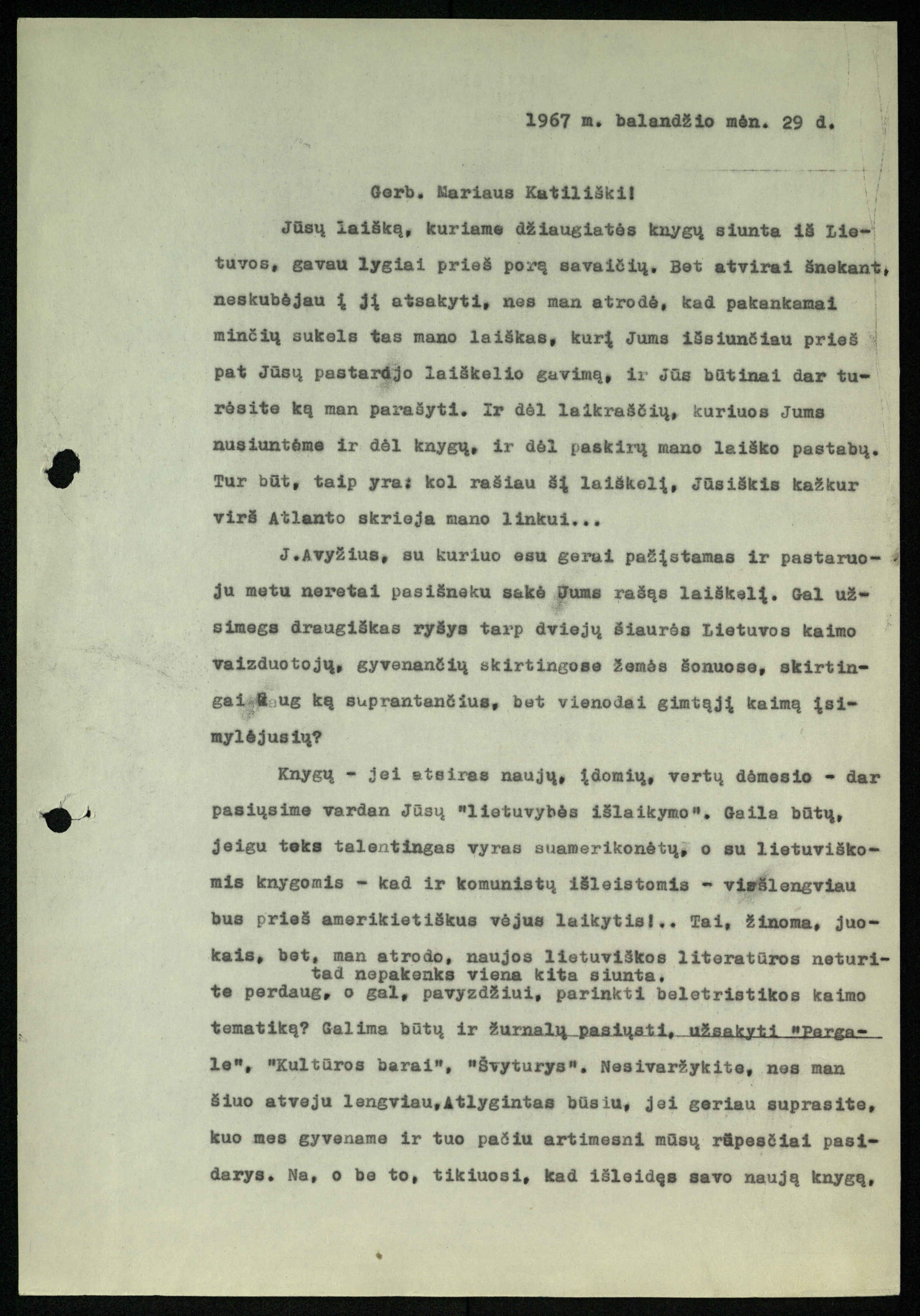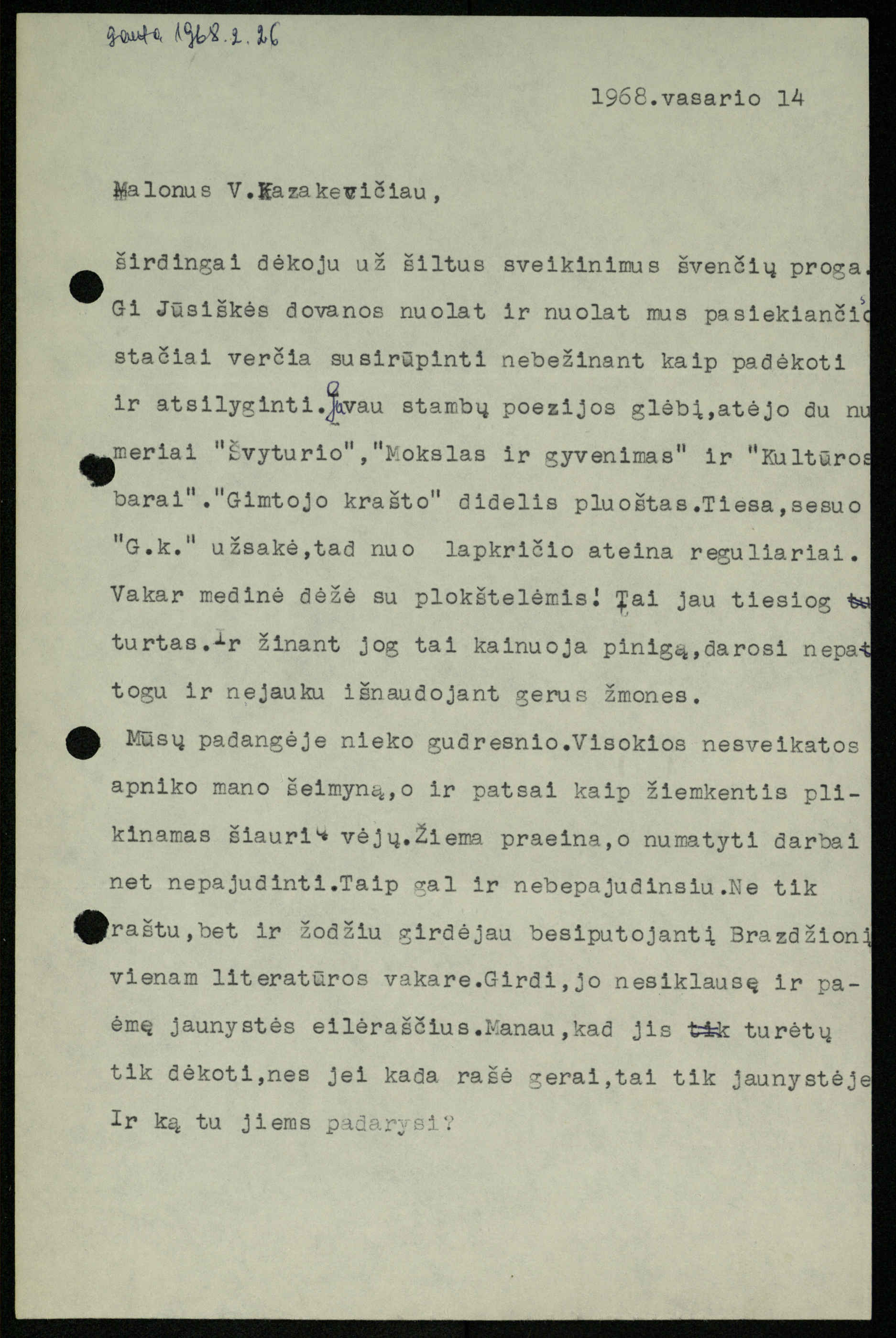 Žurnalisto Vytauto Kazakevičiaus ir rašytojų Mariaus Katiliškio, Zinaidos Nagytės-Katiliškienės korespondencija. 1966–1984 m.
