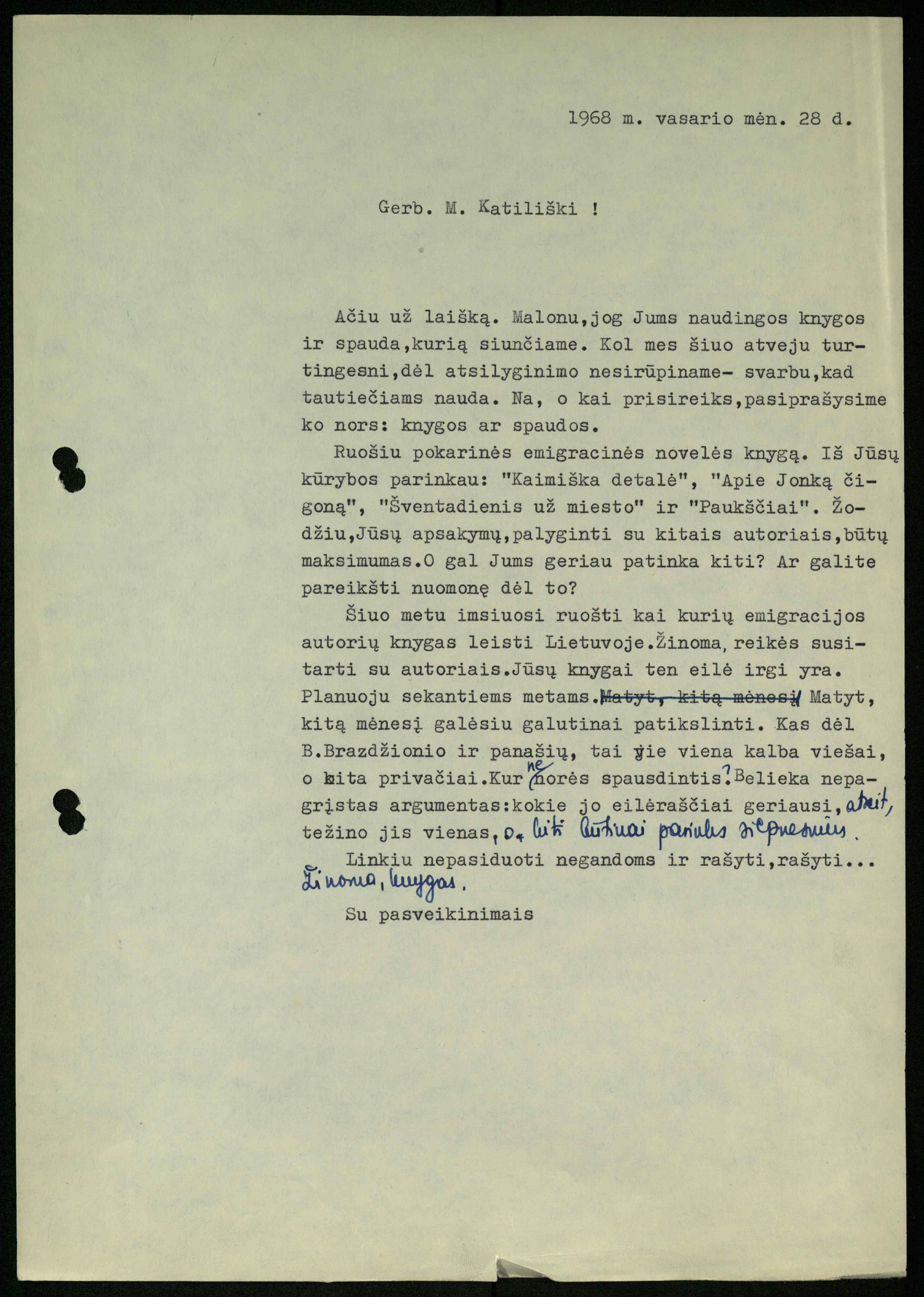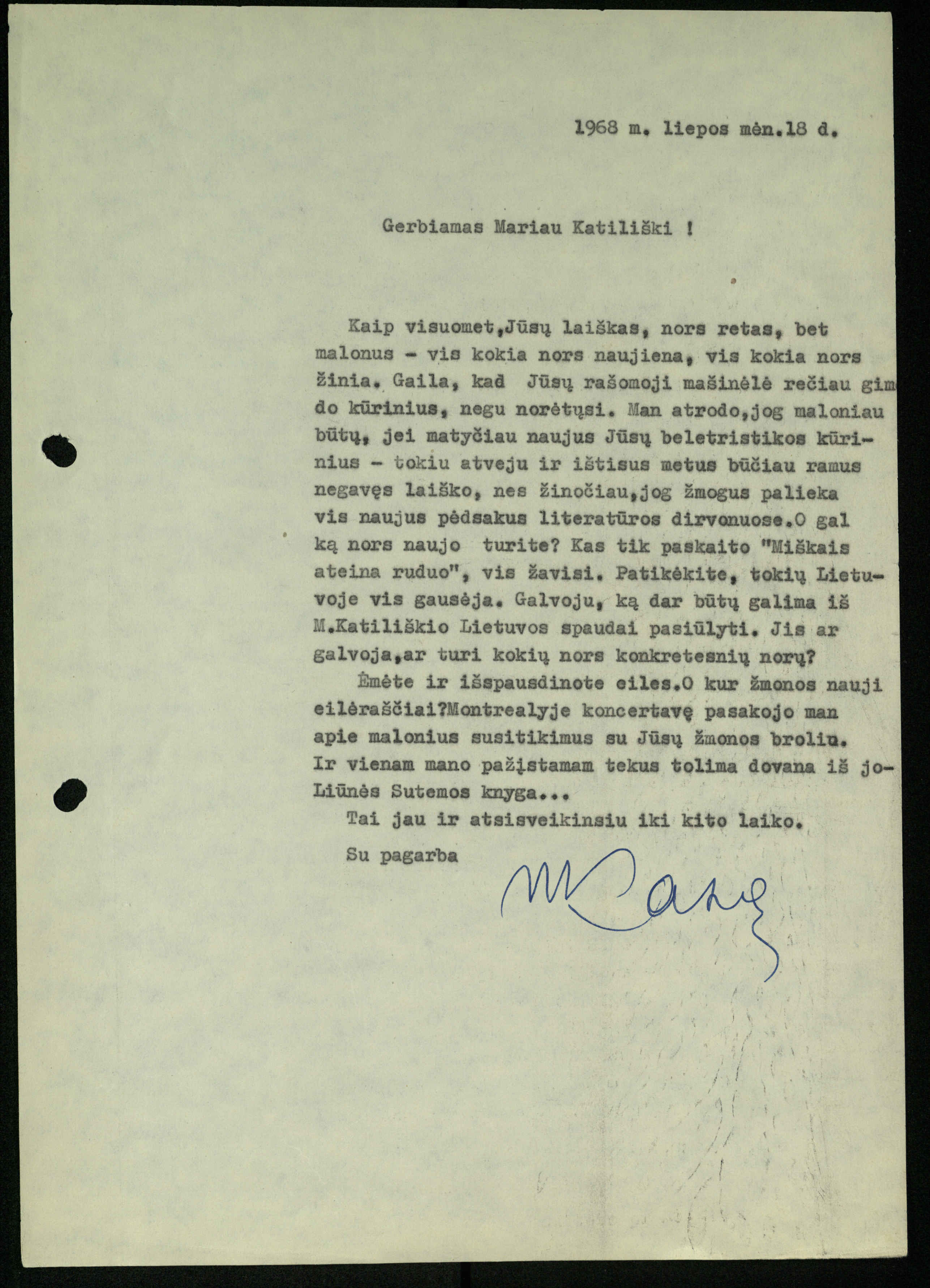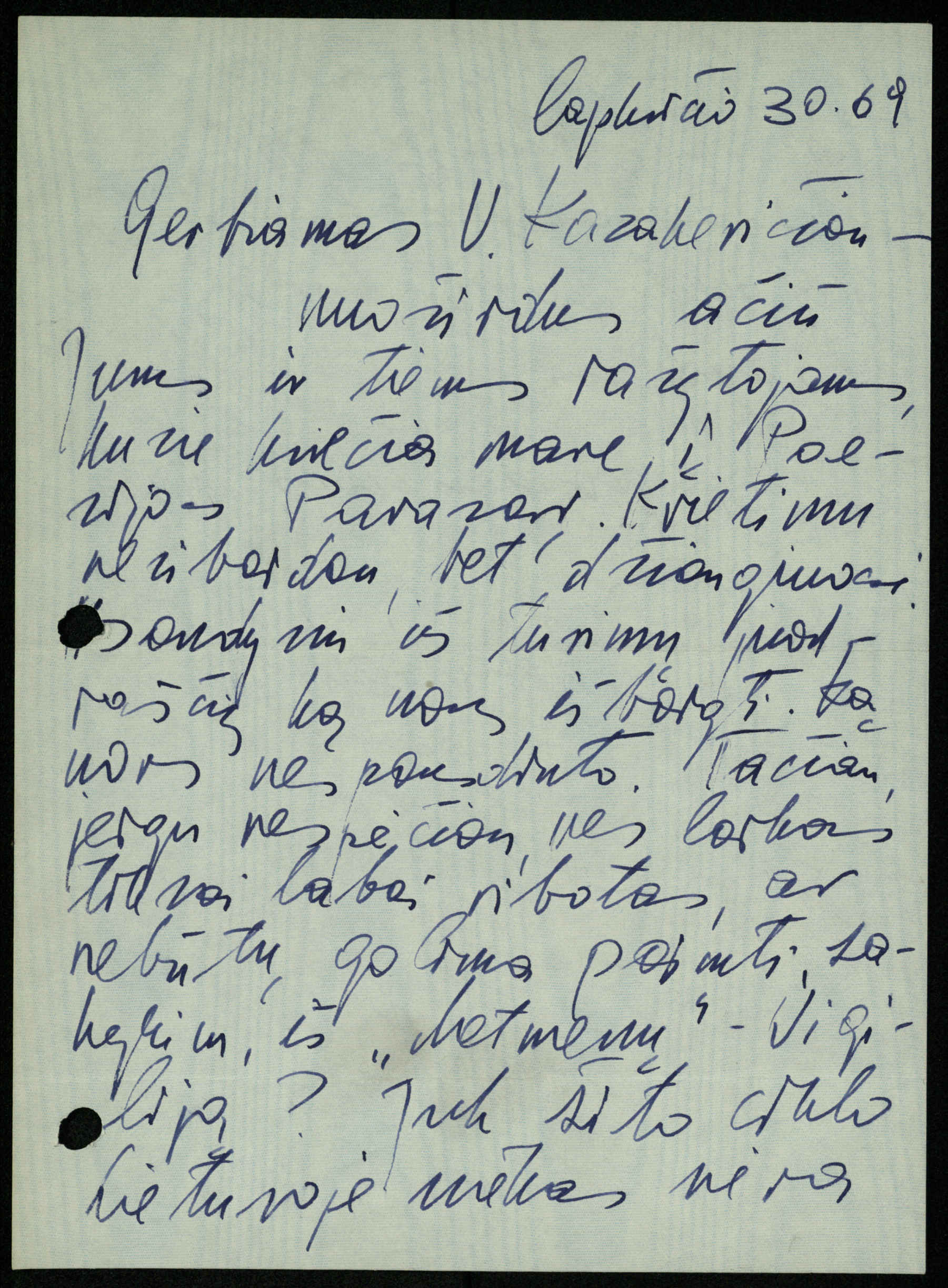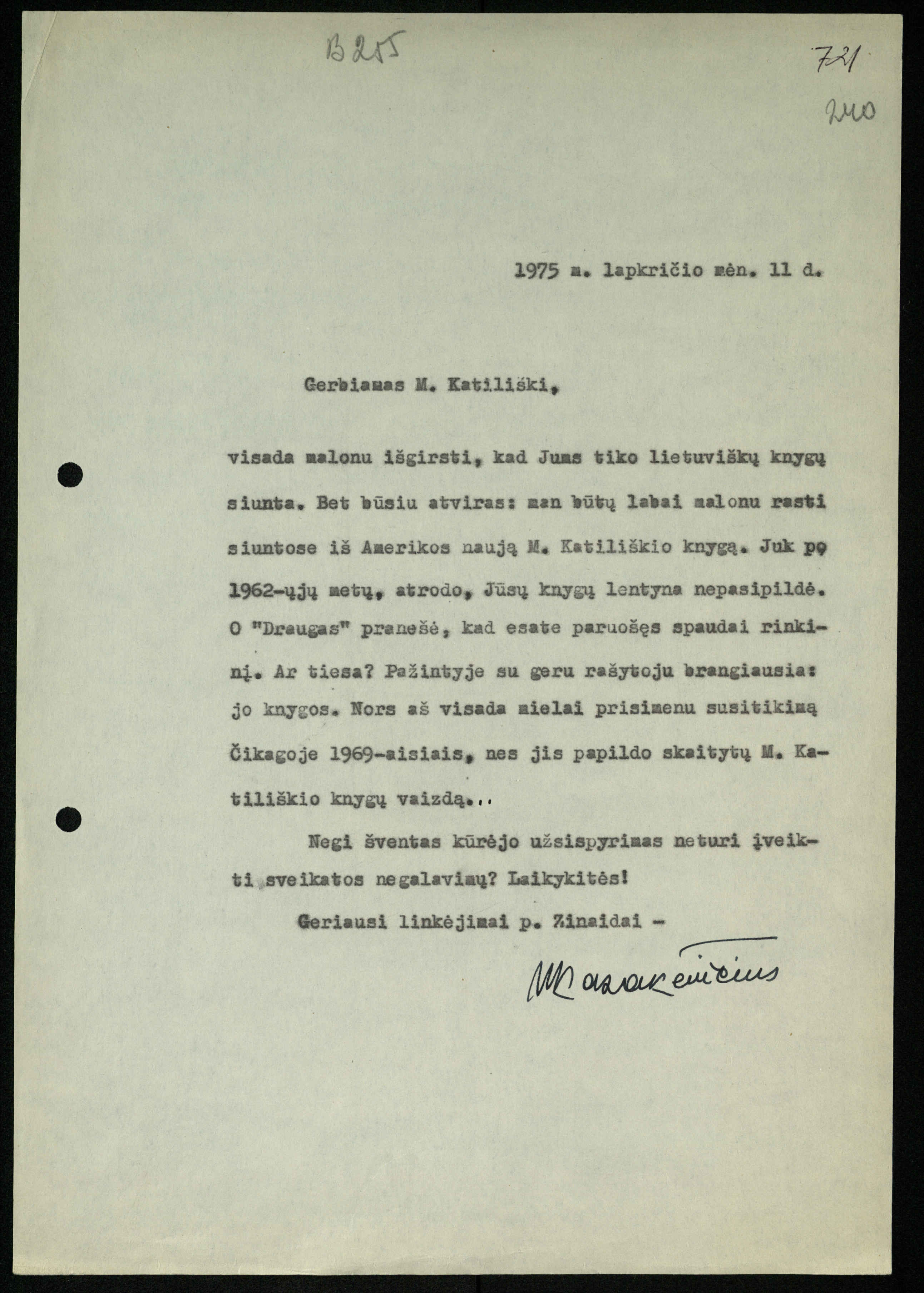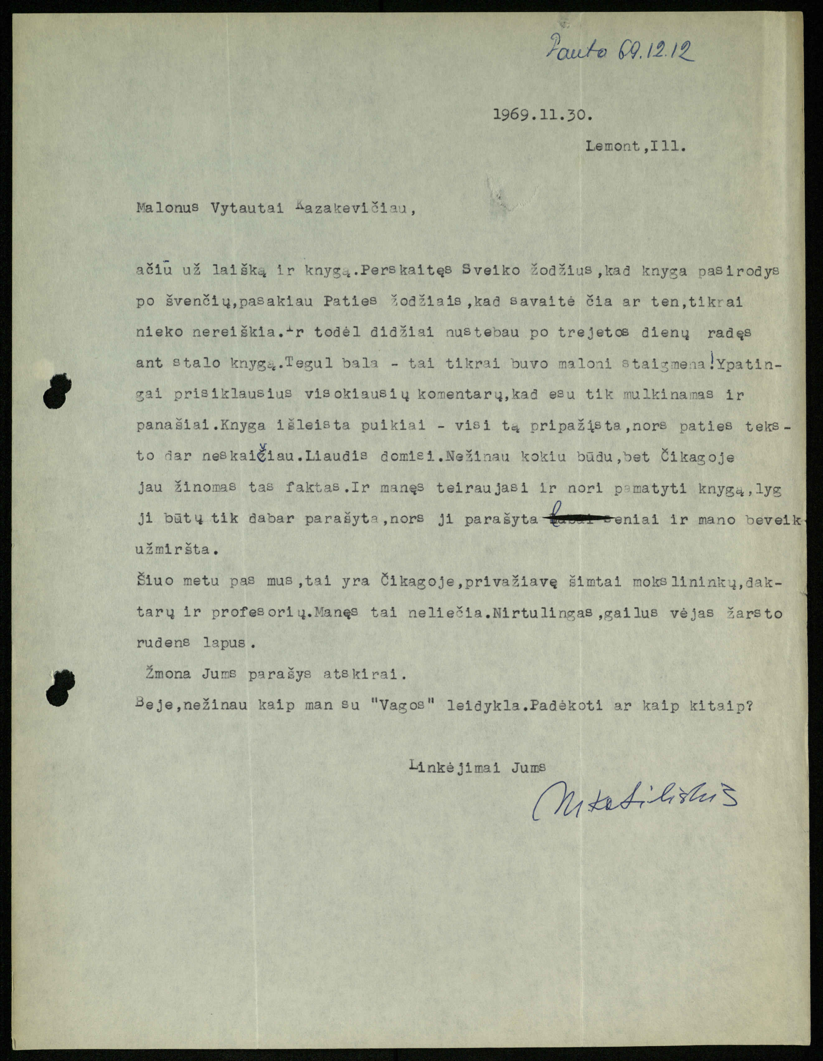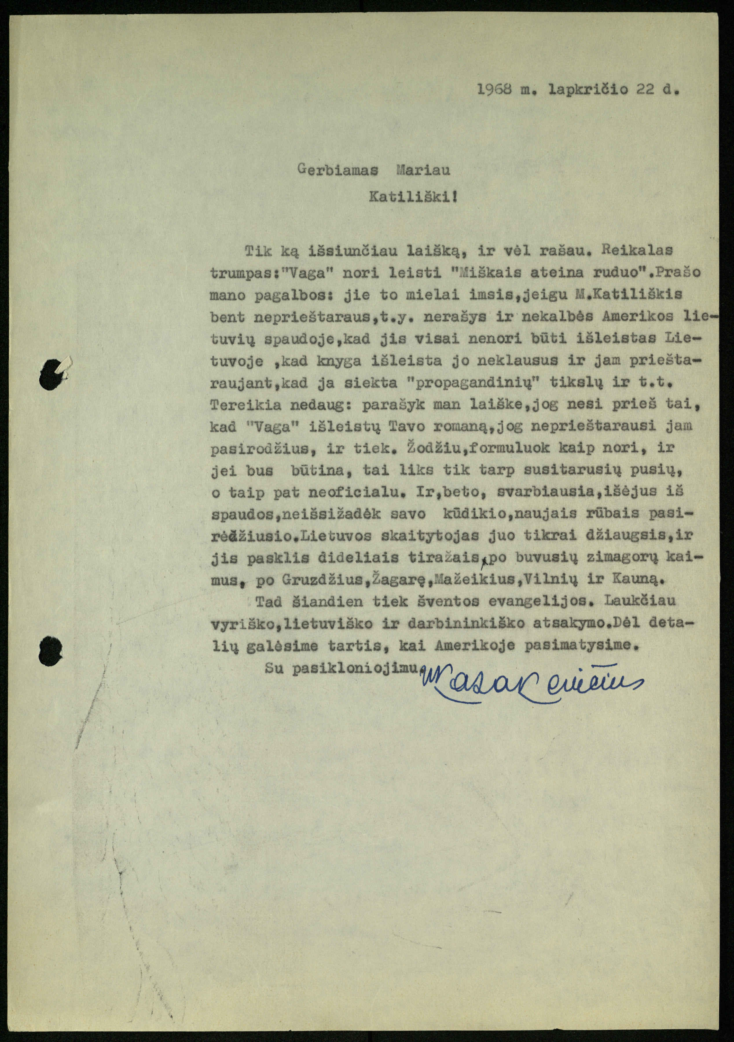 Žurnalisto Vytauto Kazakevičiaus ir rašytojų Mariaus Katiliškio, Zinaidos Nagytės-Katiliškienės korespondencija. 1966–1984 m.