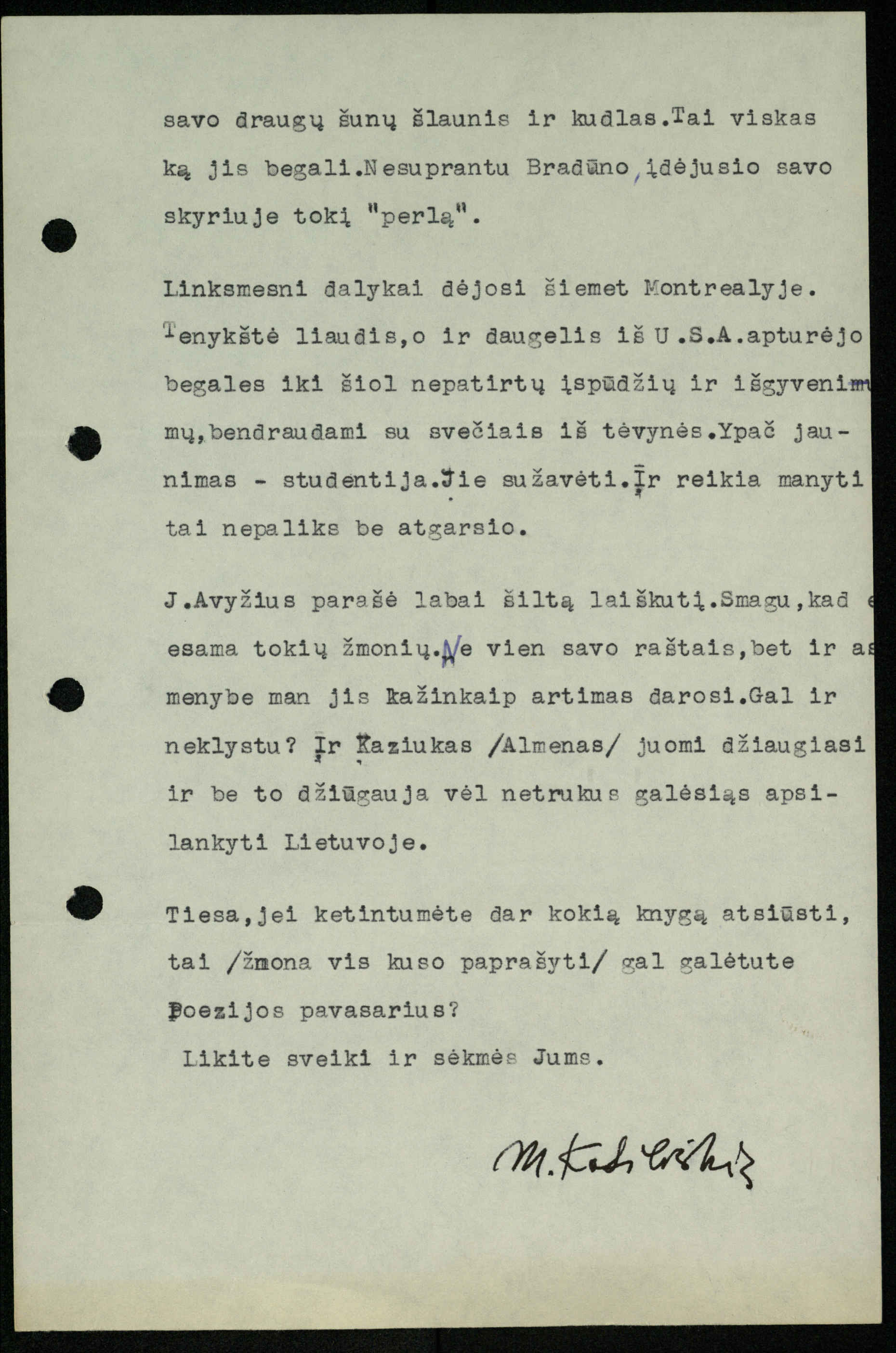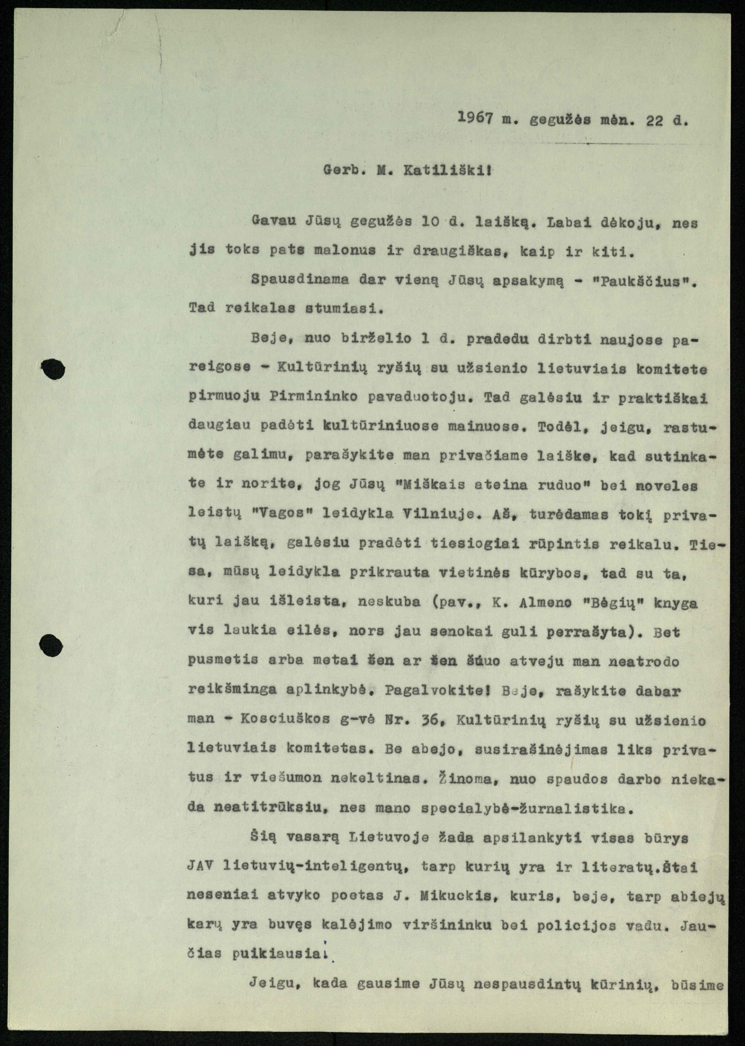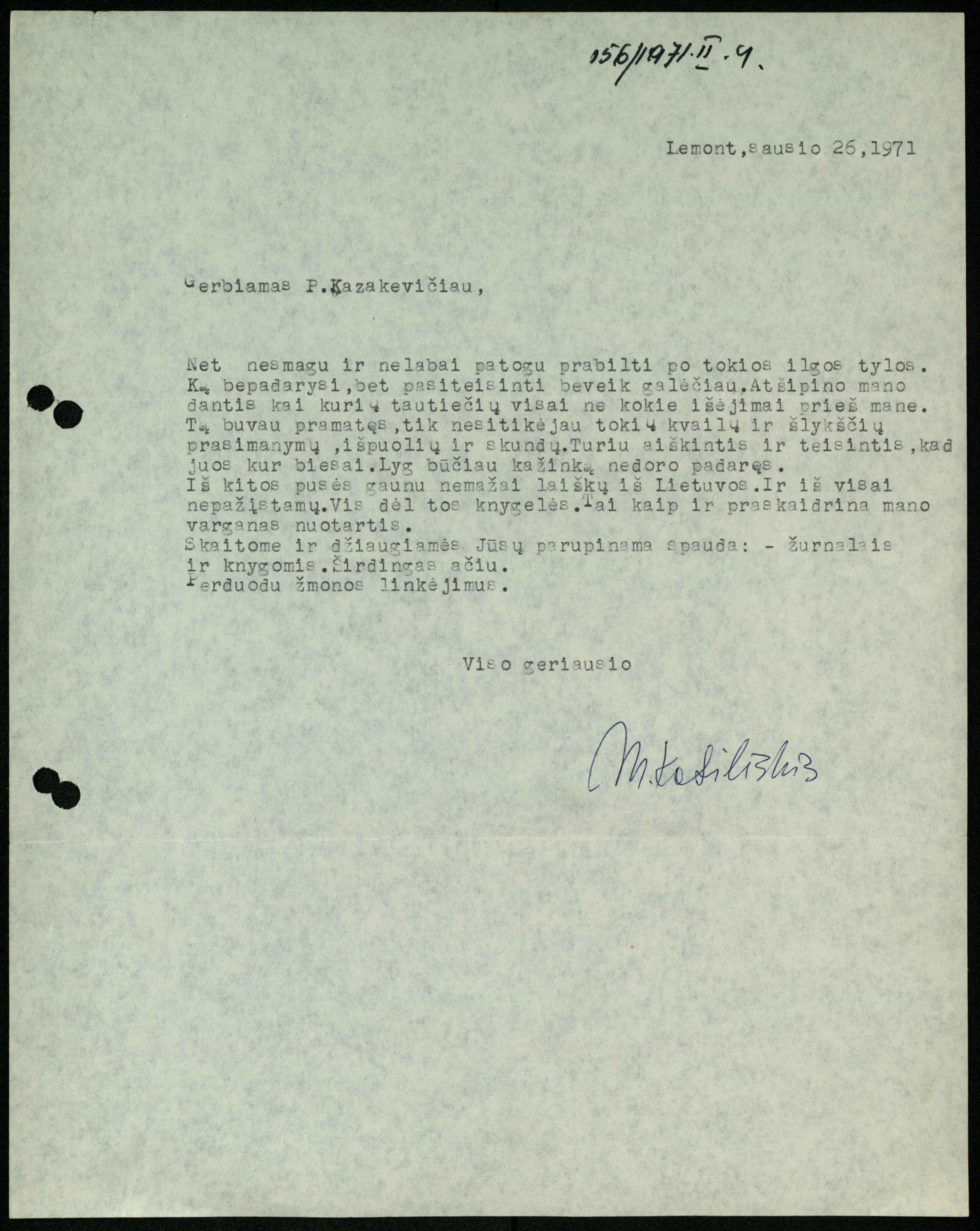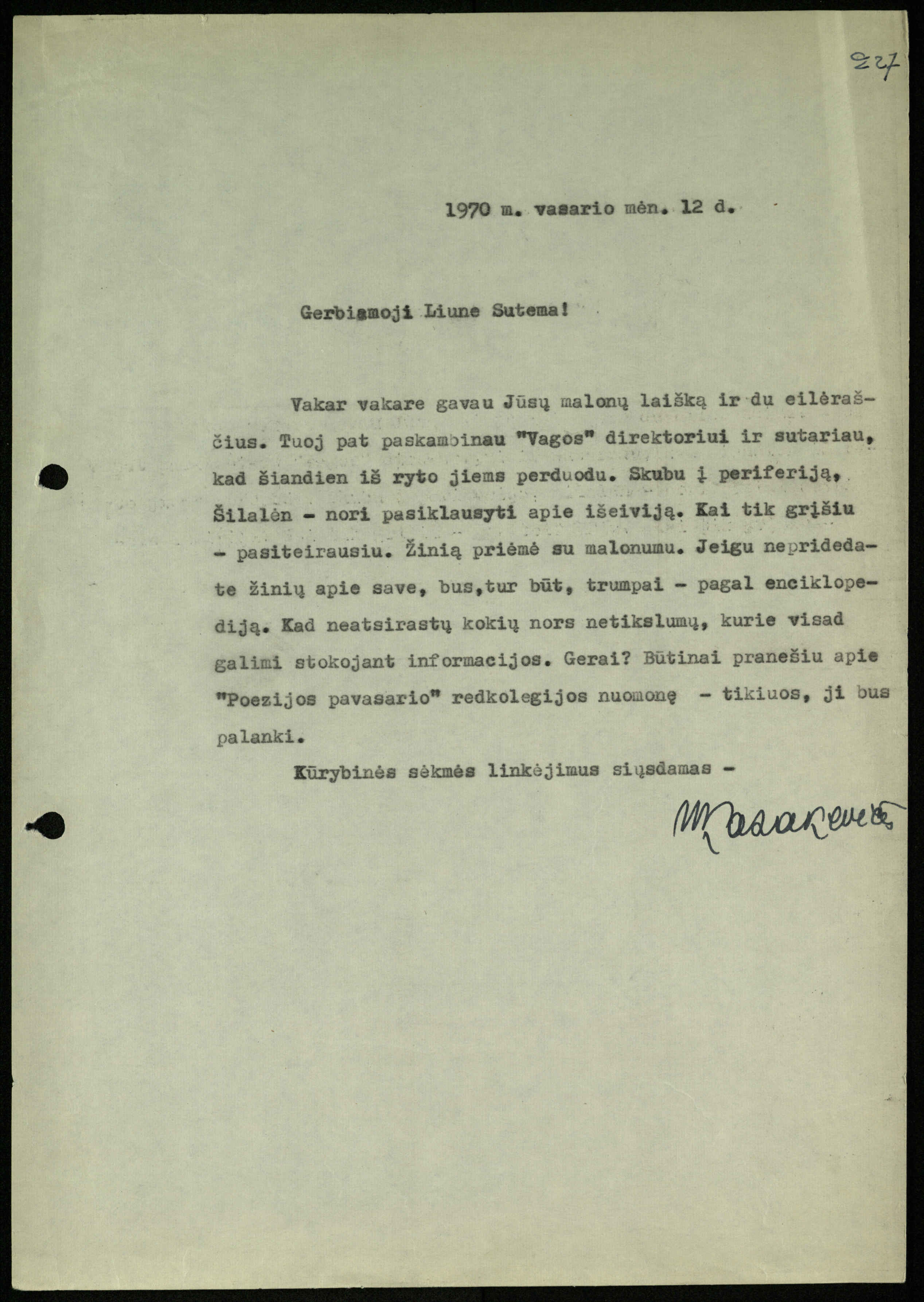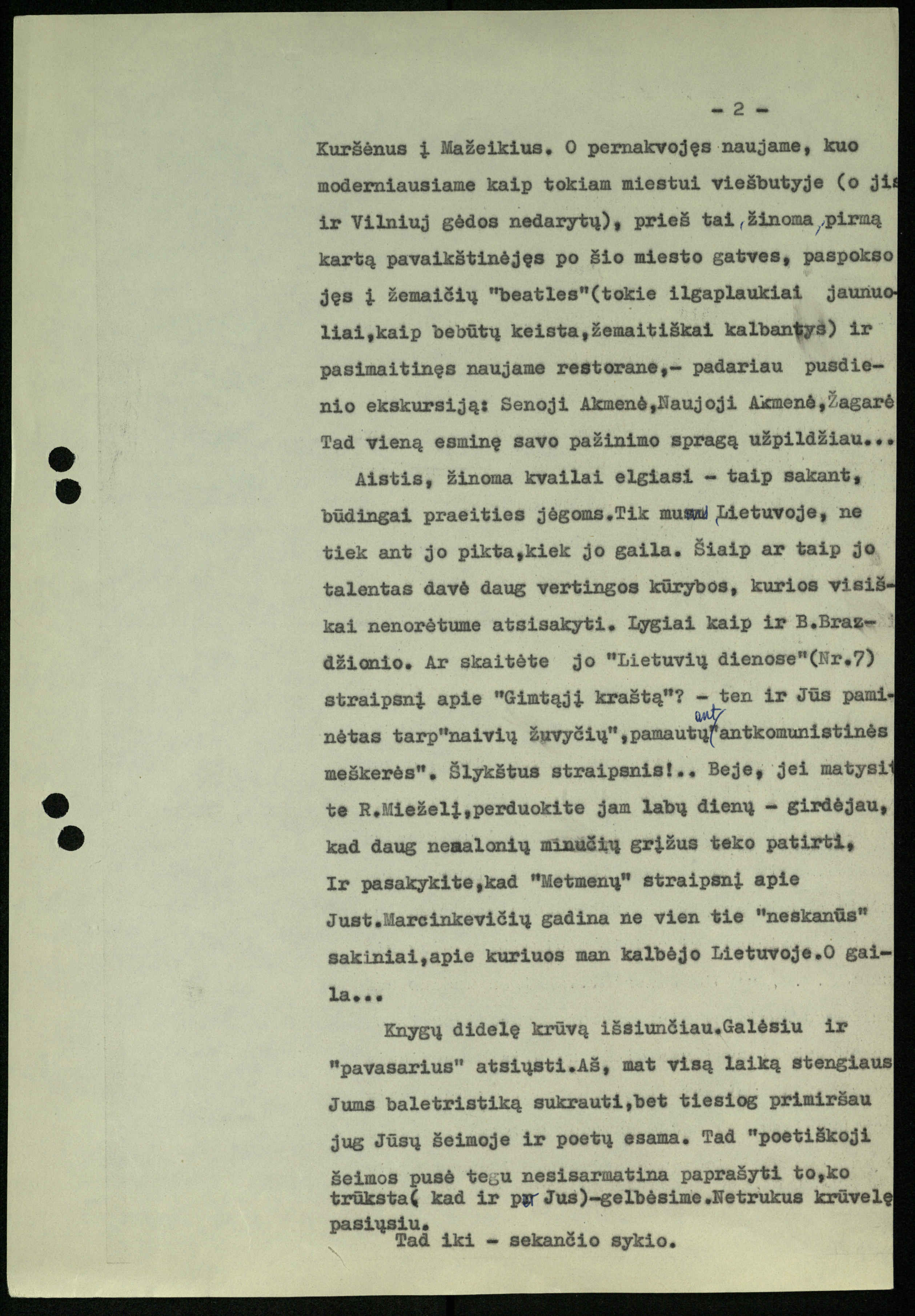 Žurnalisto Vytauto Kazakevičiaus ir rašytojų Mariaus Katiliškio, Zinaidos Nagytės-Katiliškienės korespondencija. 1966–1984 m.