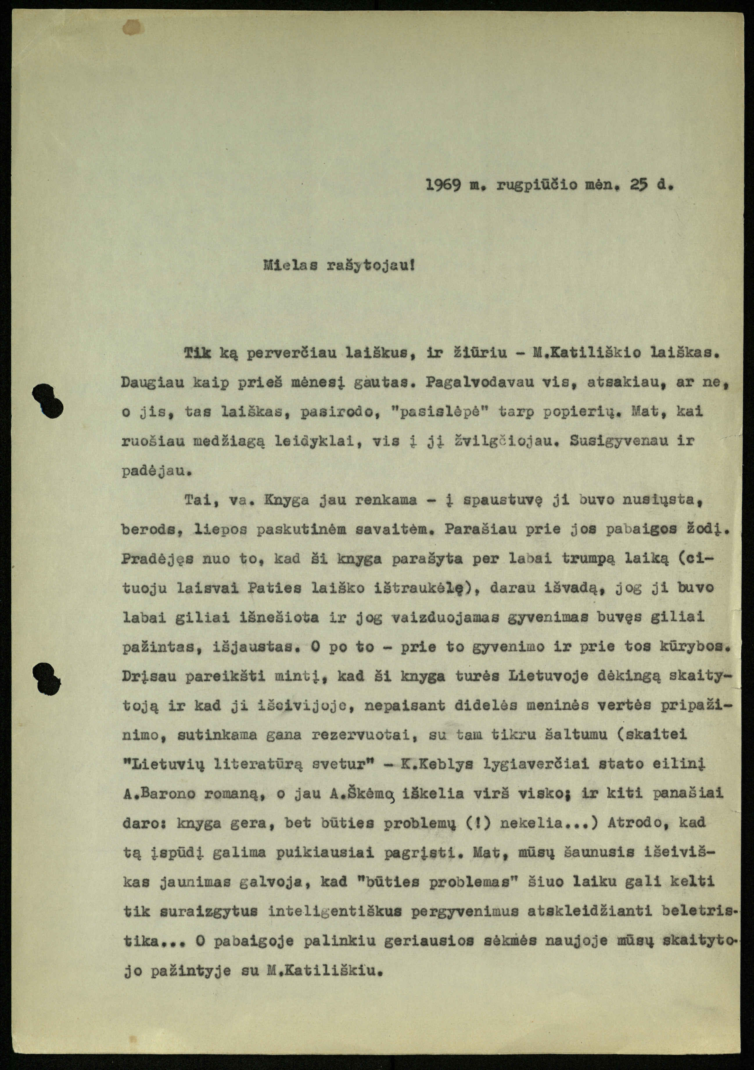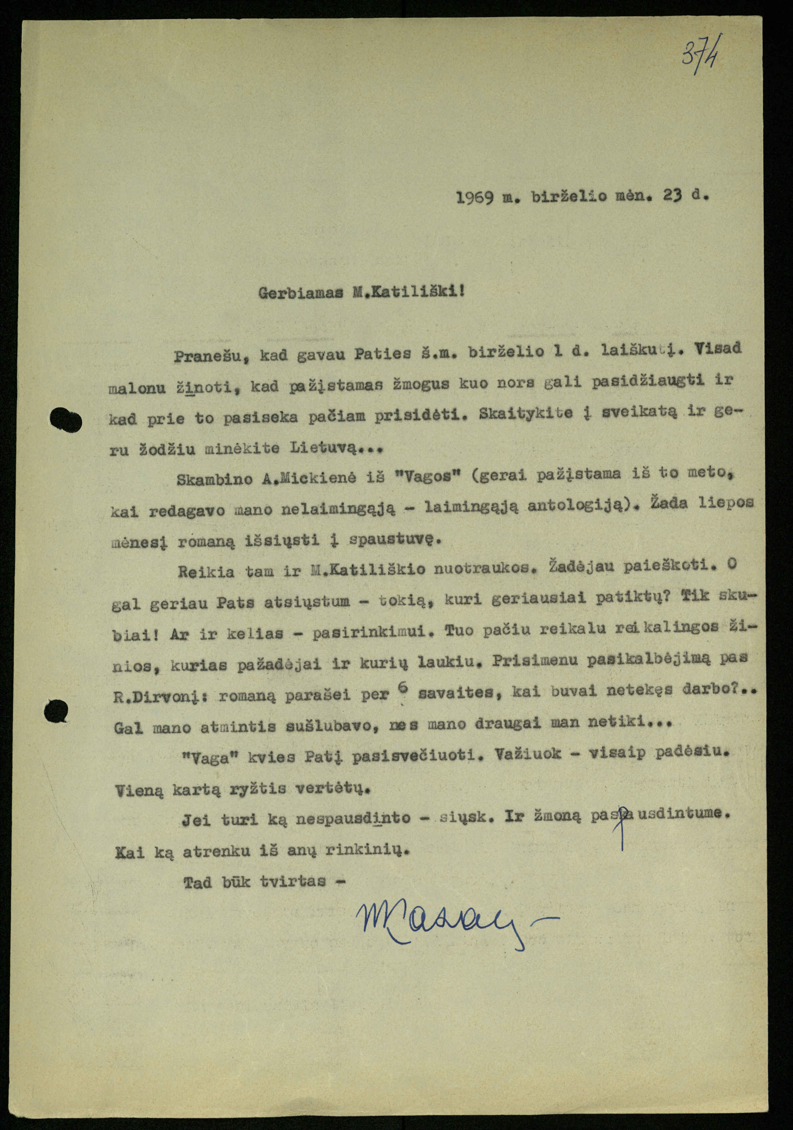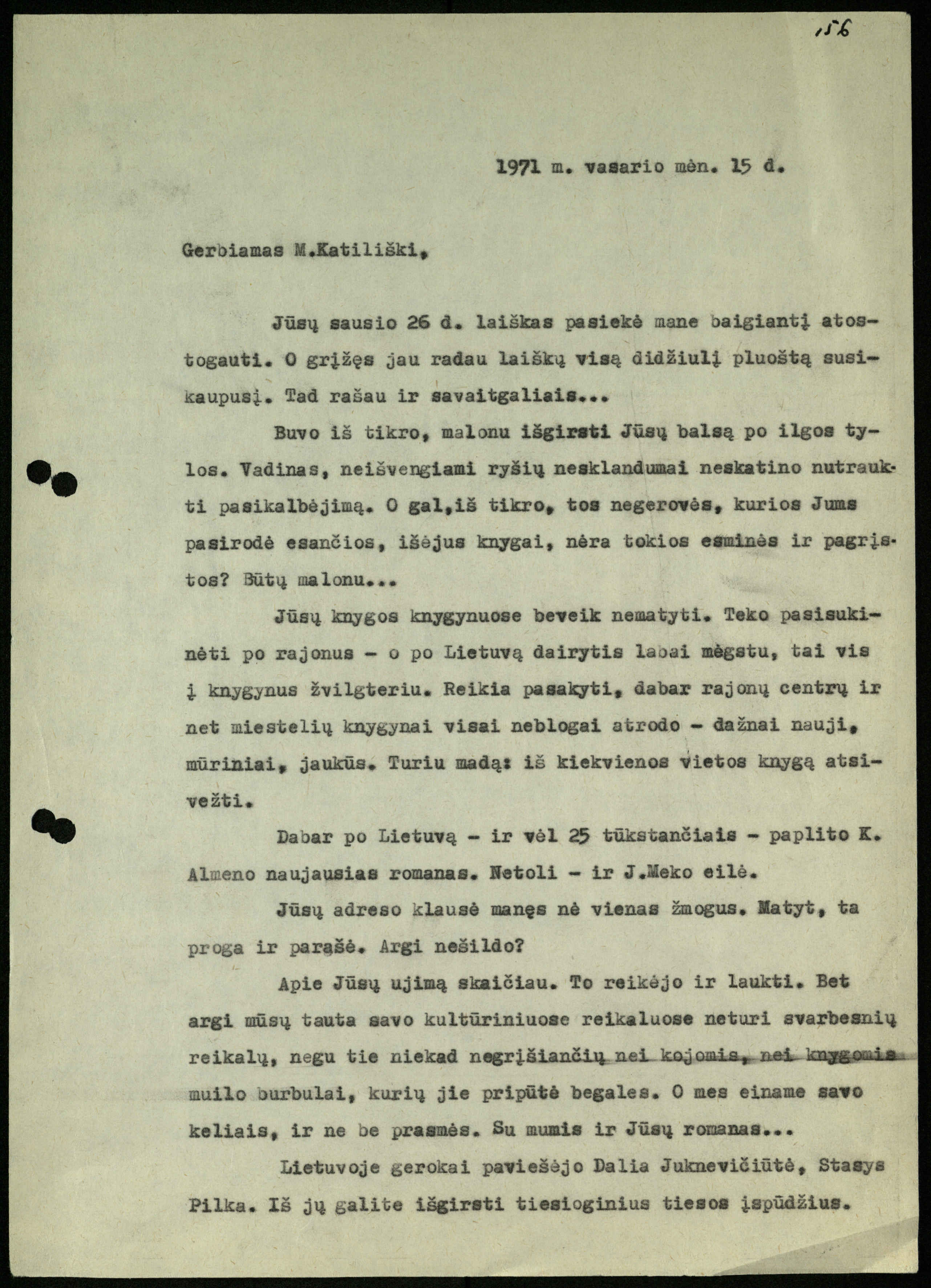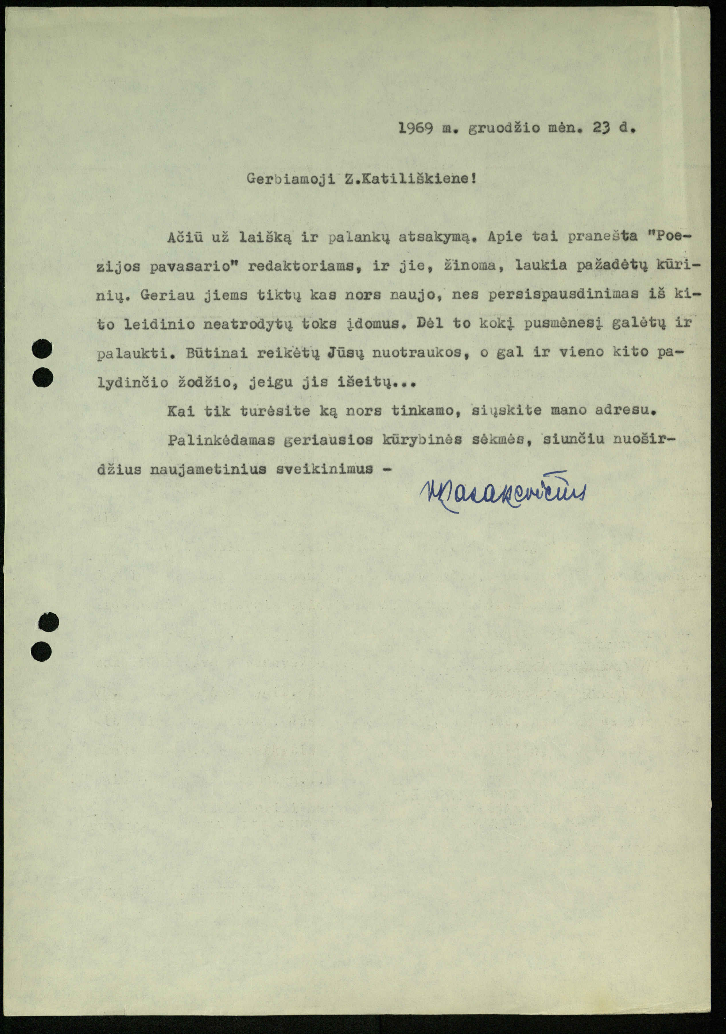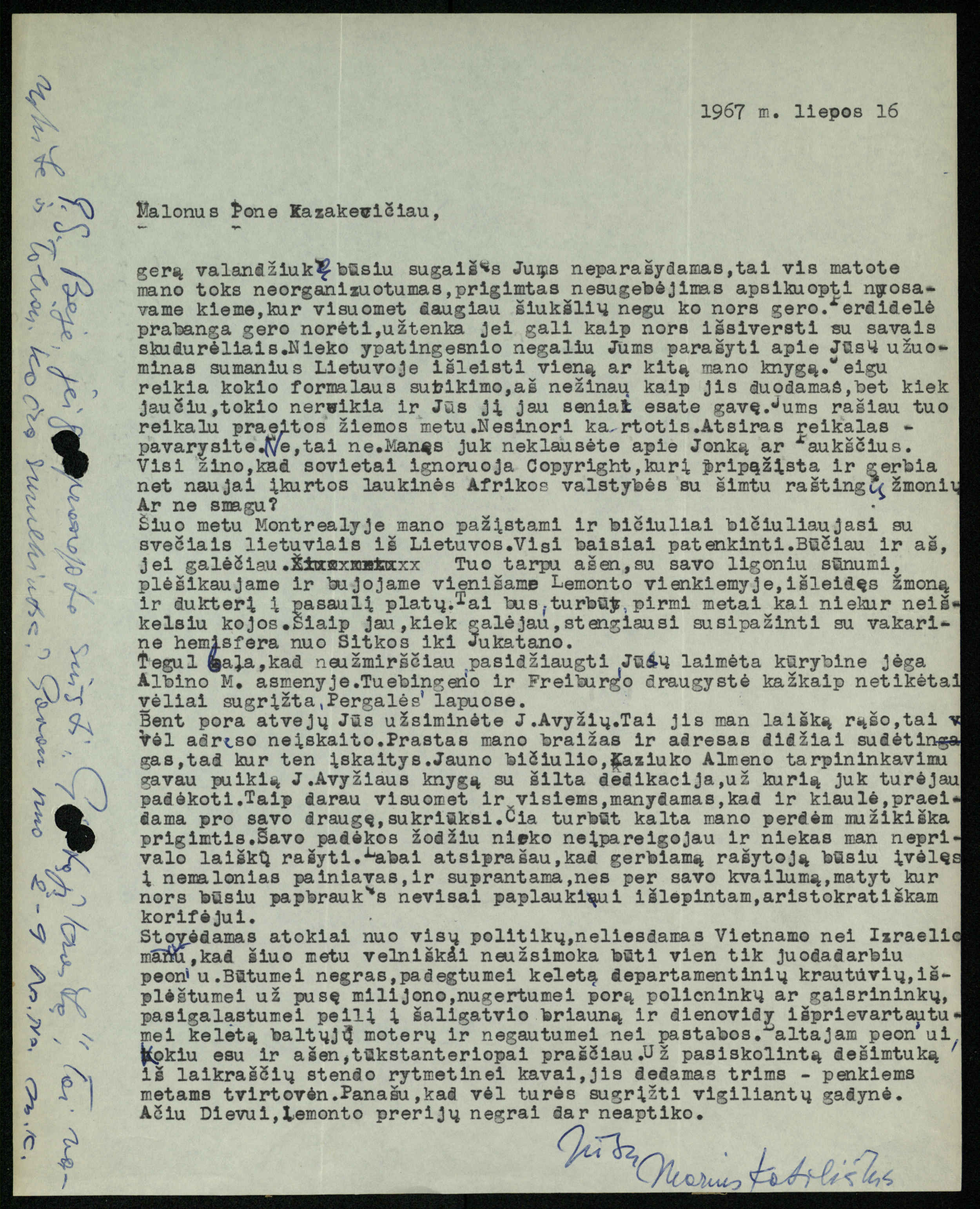 Žurnalisto Vytauto Kazakevičiaus ir rašytojų Mariaus Katiliškio, Zinaidos Nagytės-Katiliškienės korespondencija. 1966–1984 m.