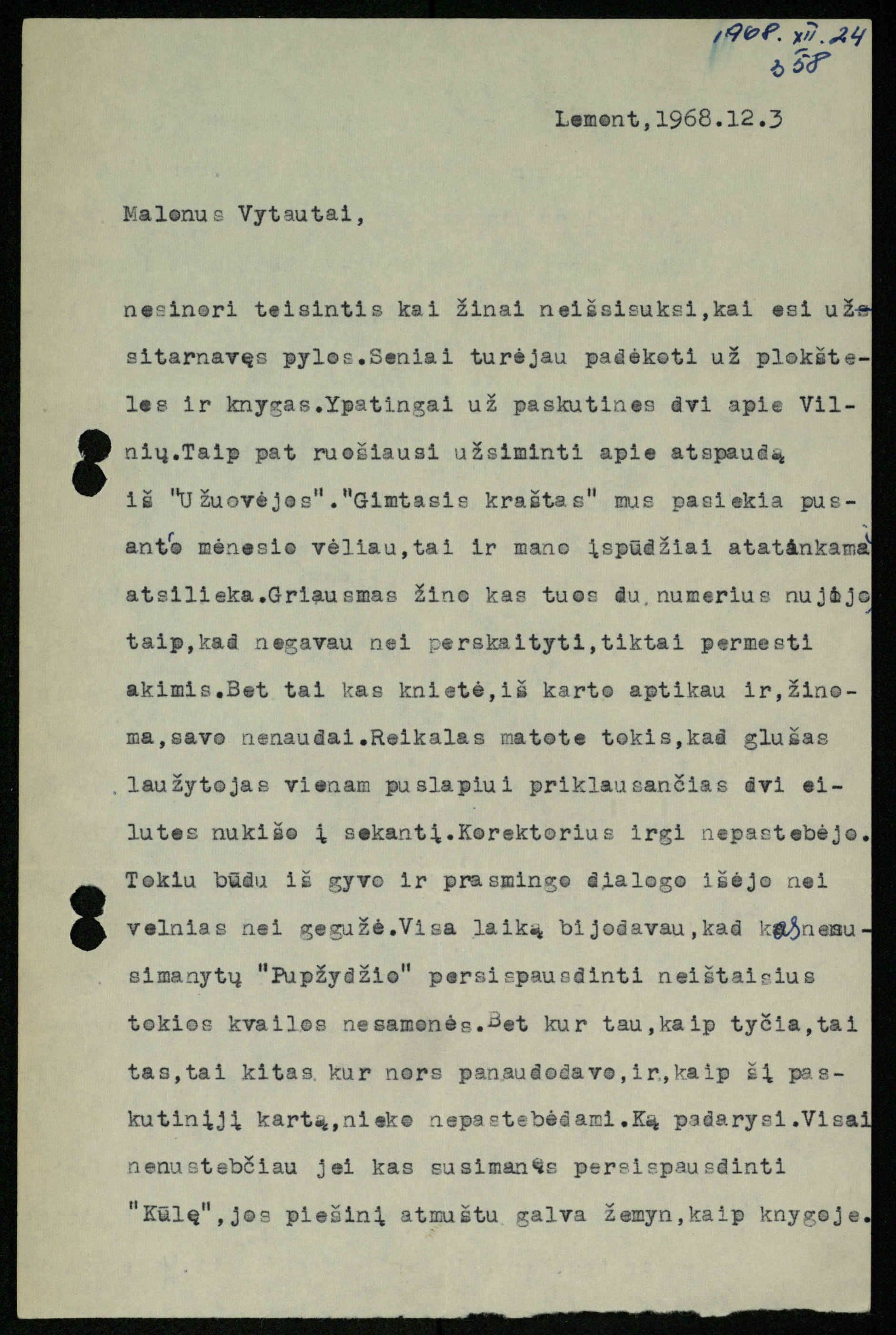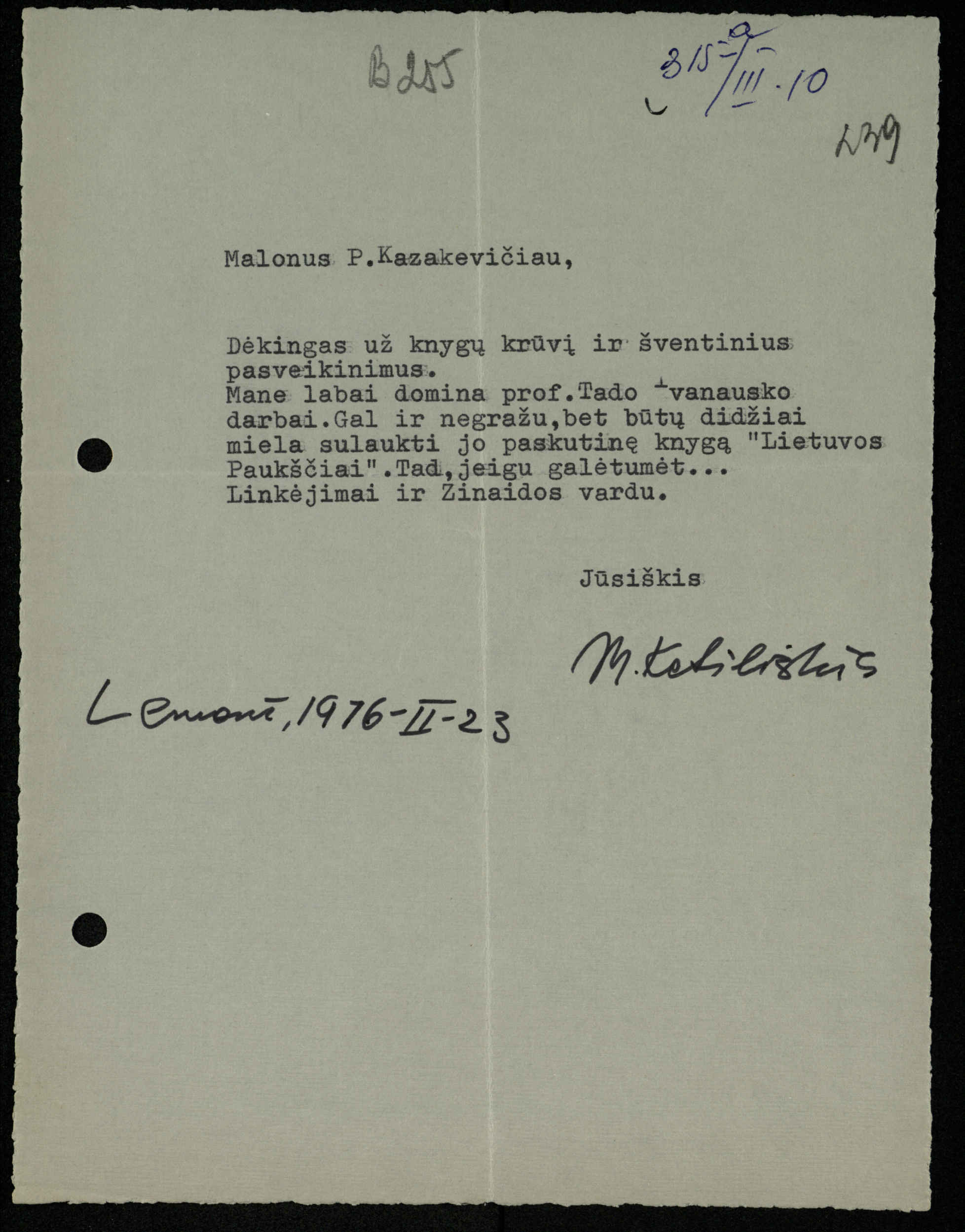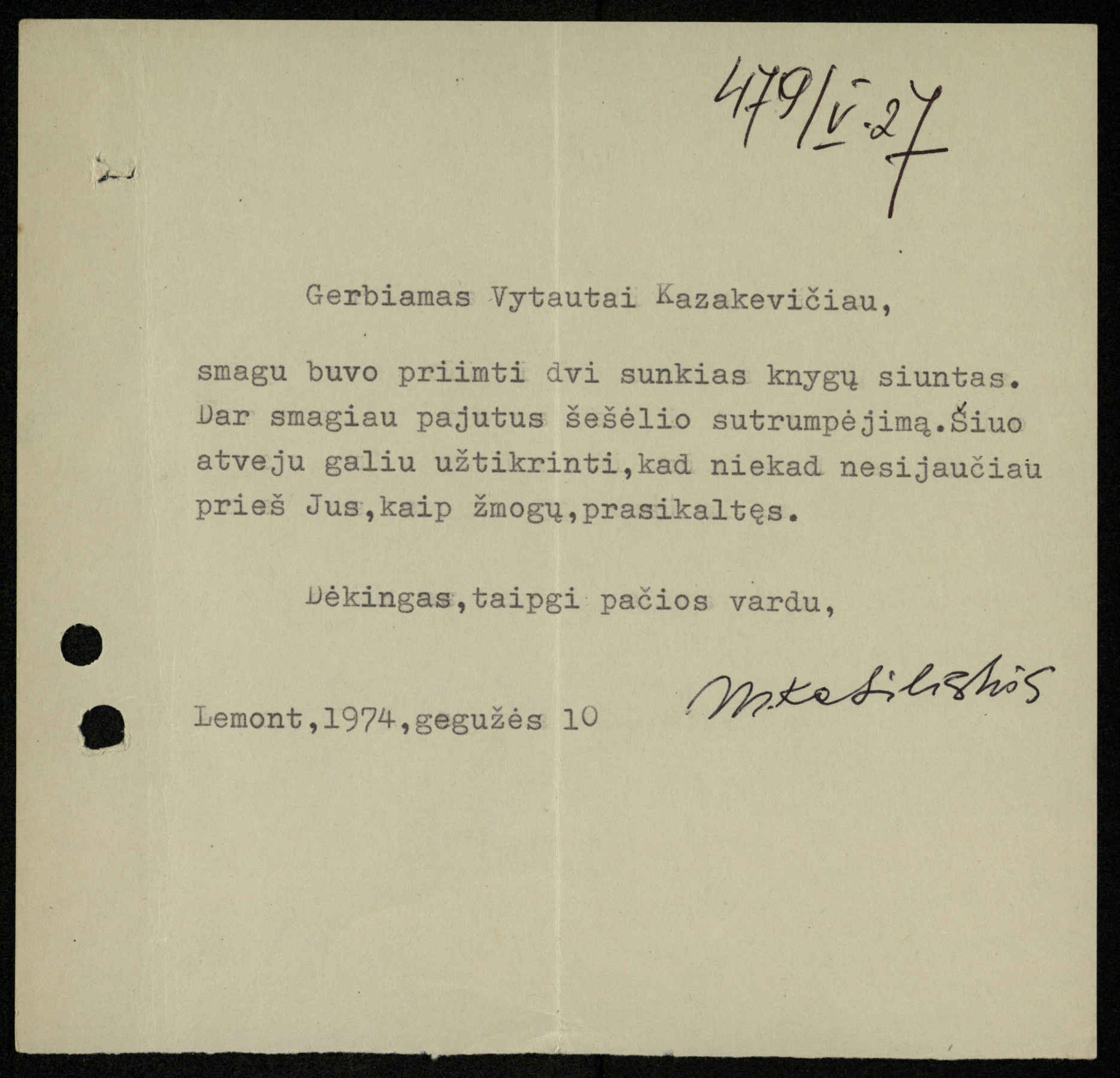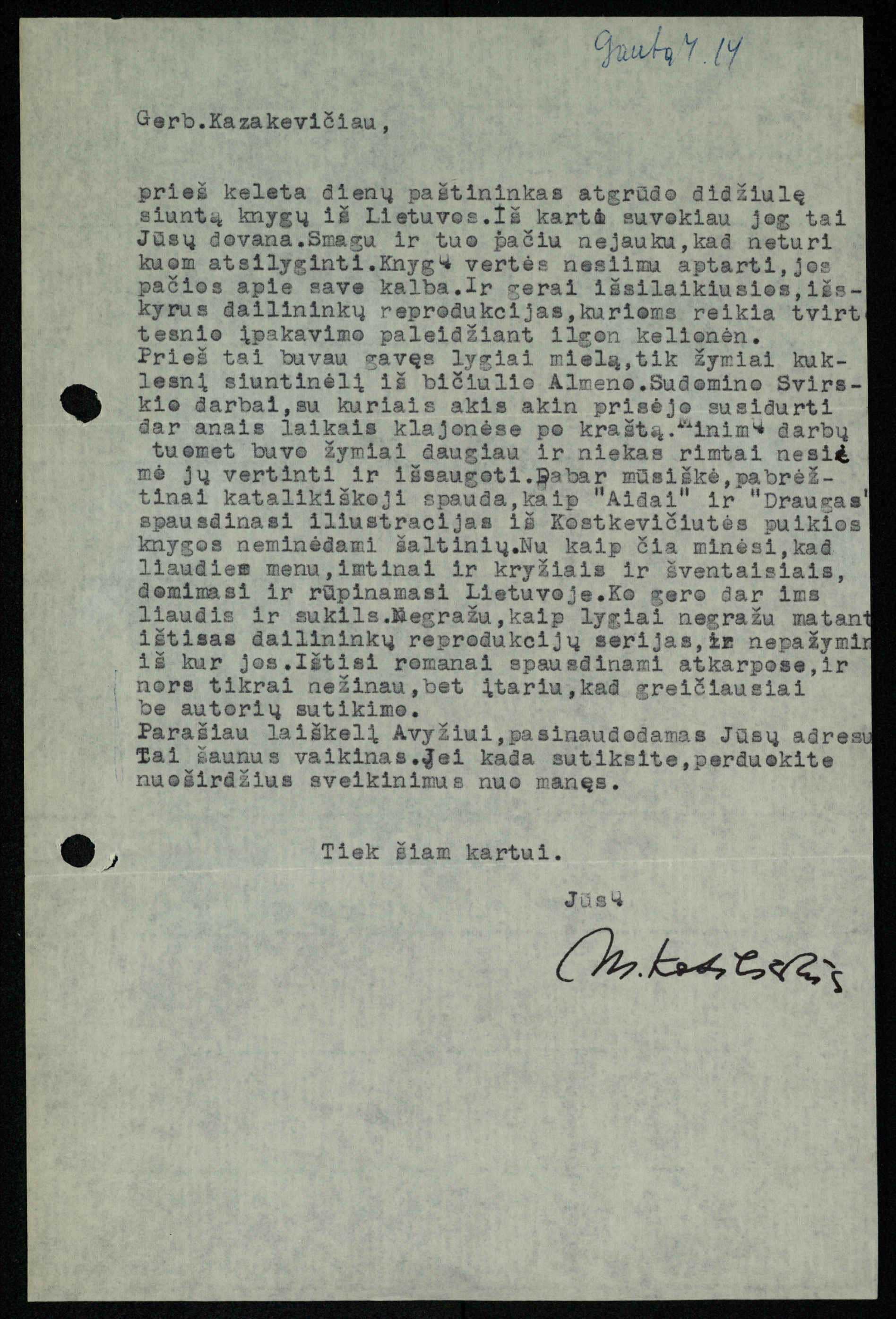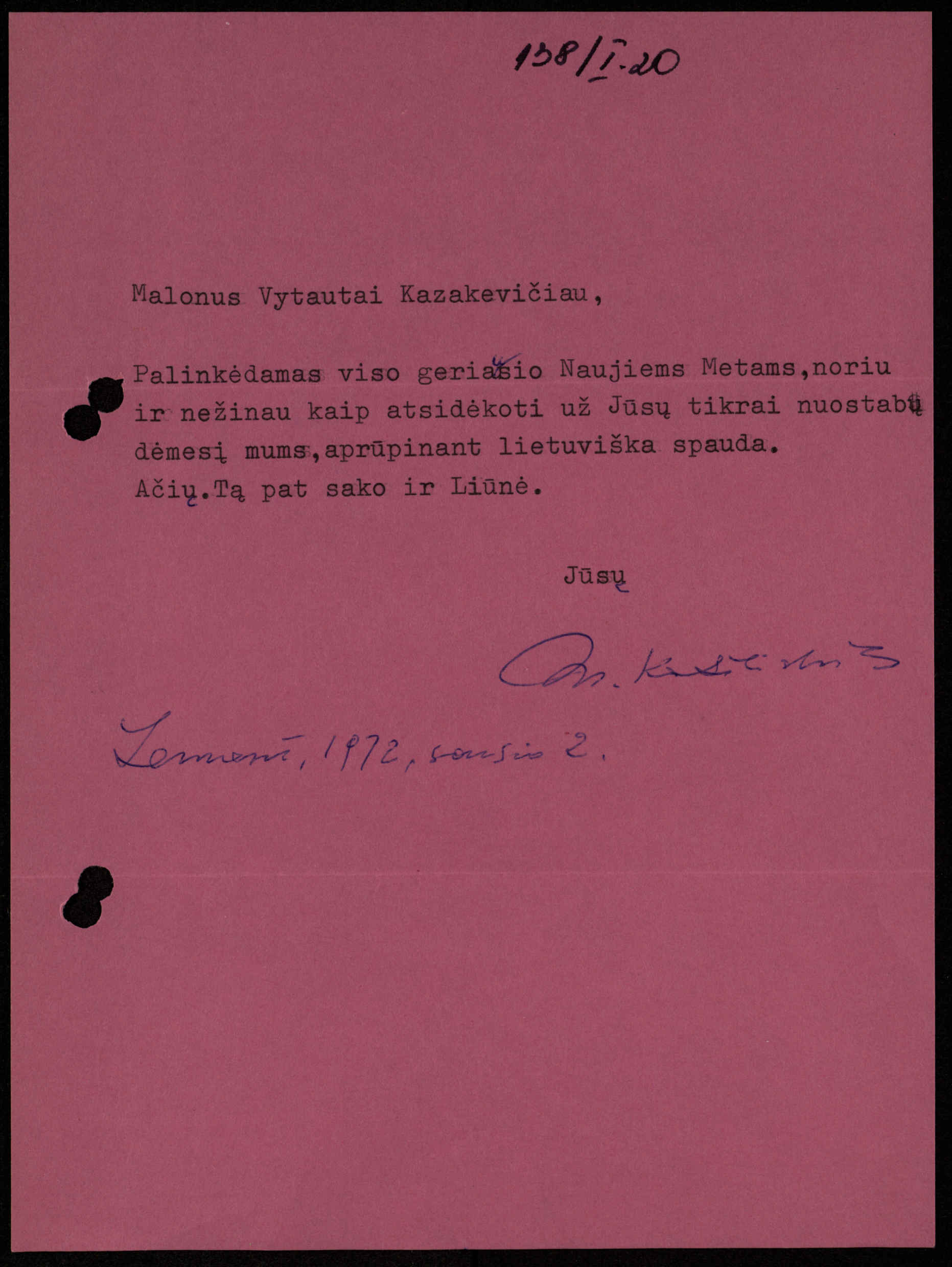 Žurnalisto Vytauto Kazakevičiaus ir rašytojų Mariaus Katiliškio, Zinaidos Nagytės-Katiliškienės korespondencija. 1966–1984 m.
