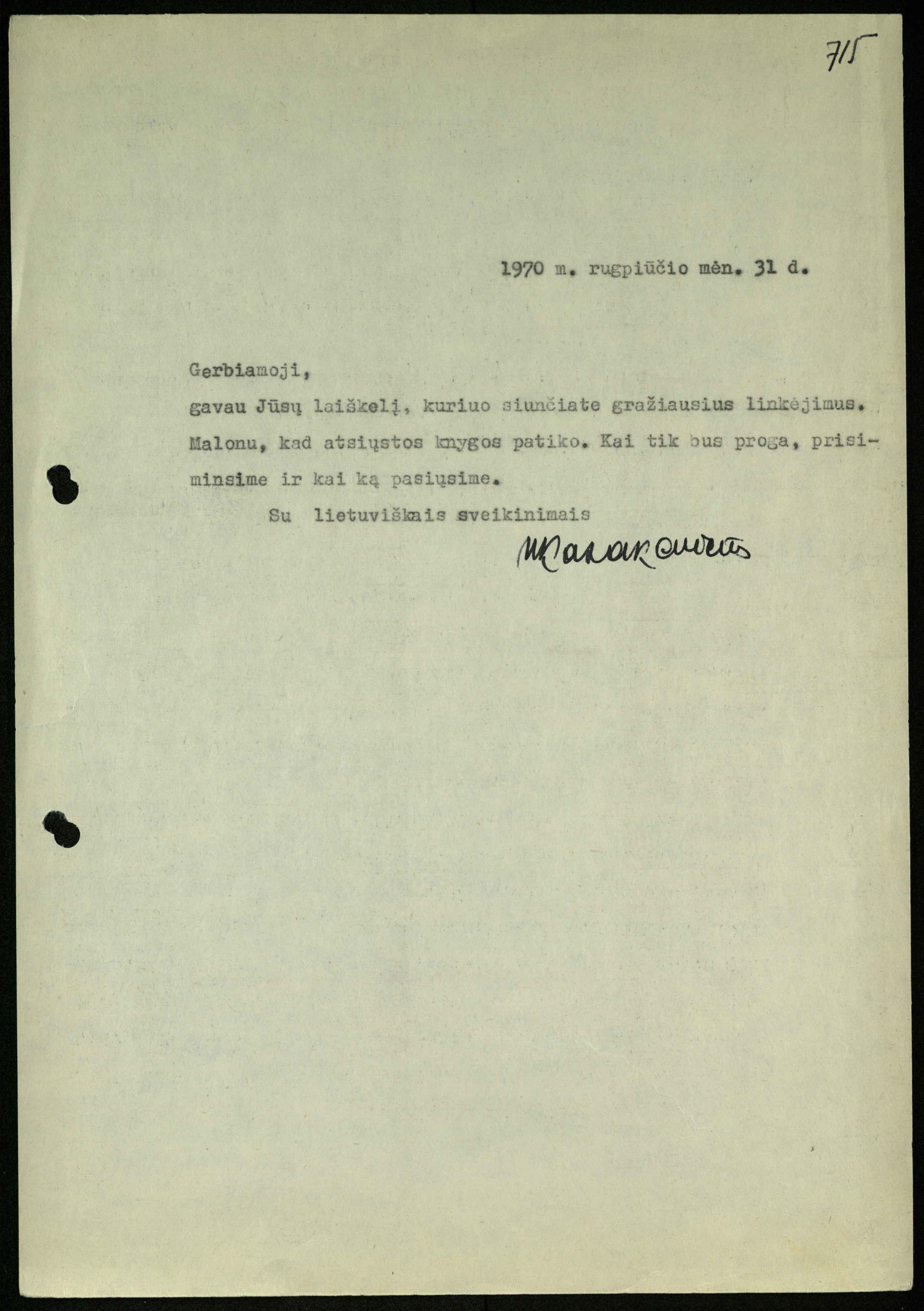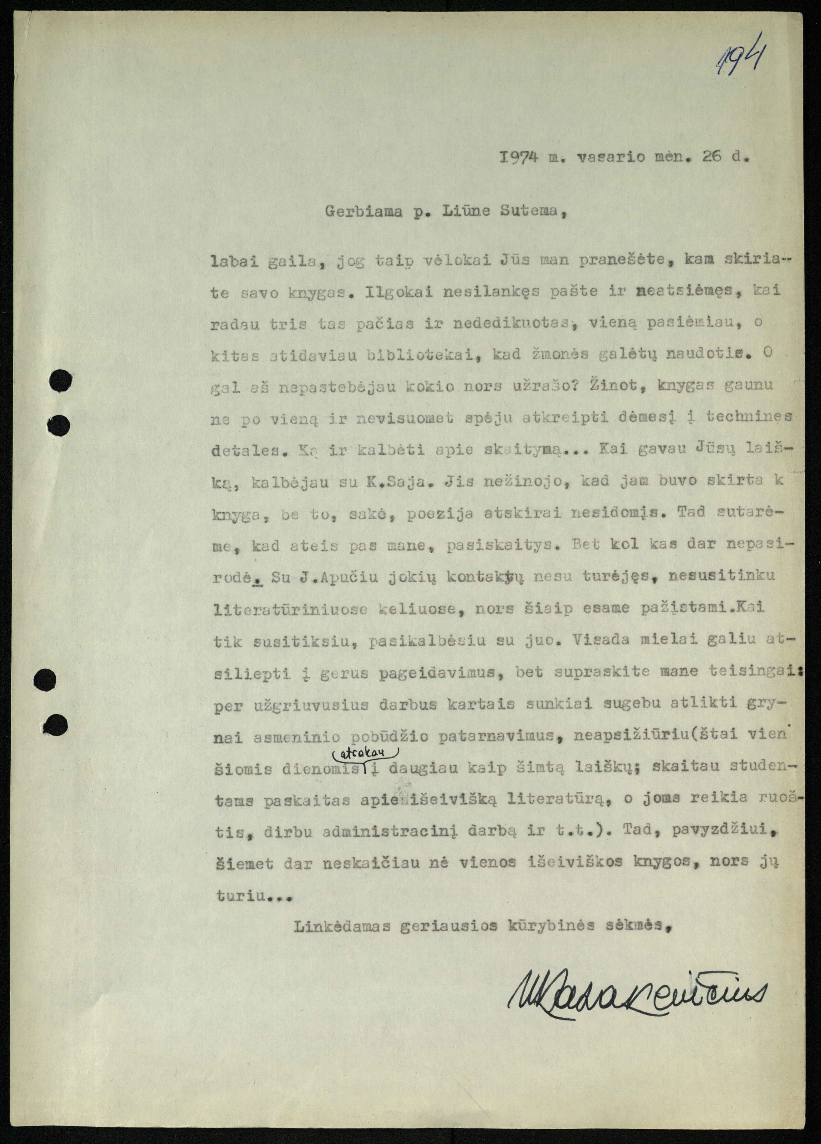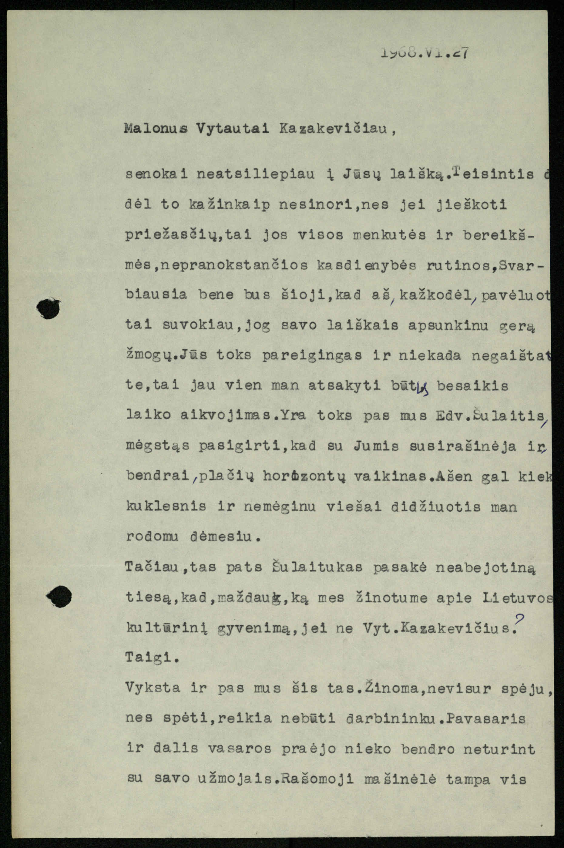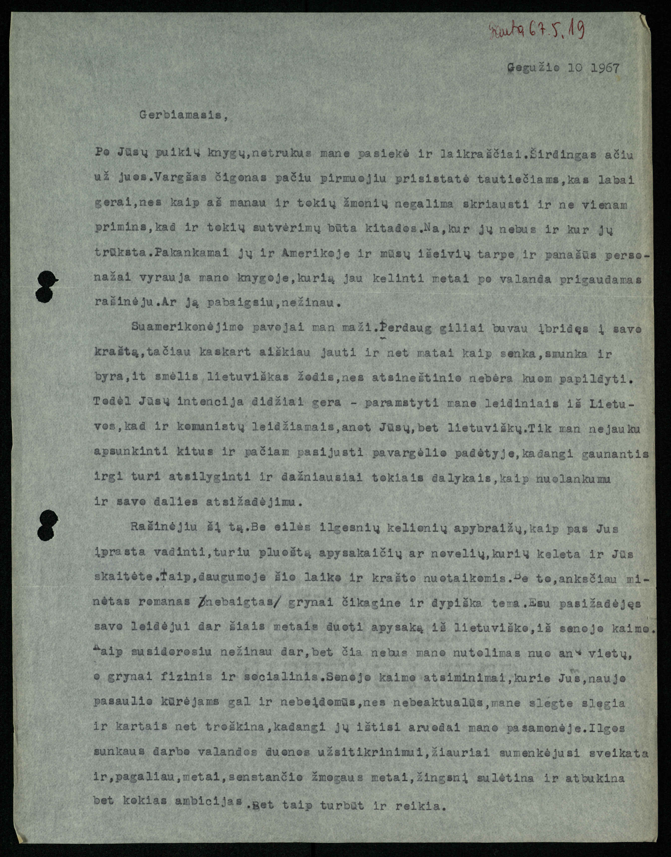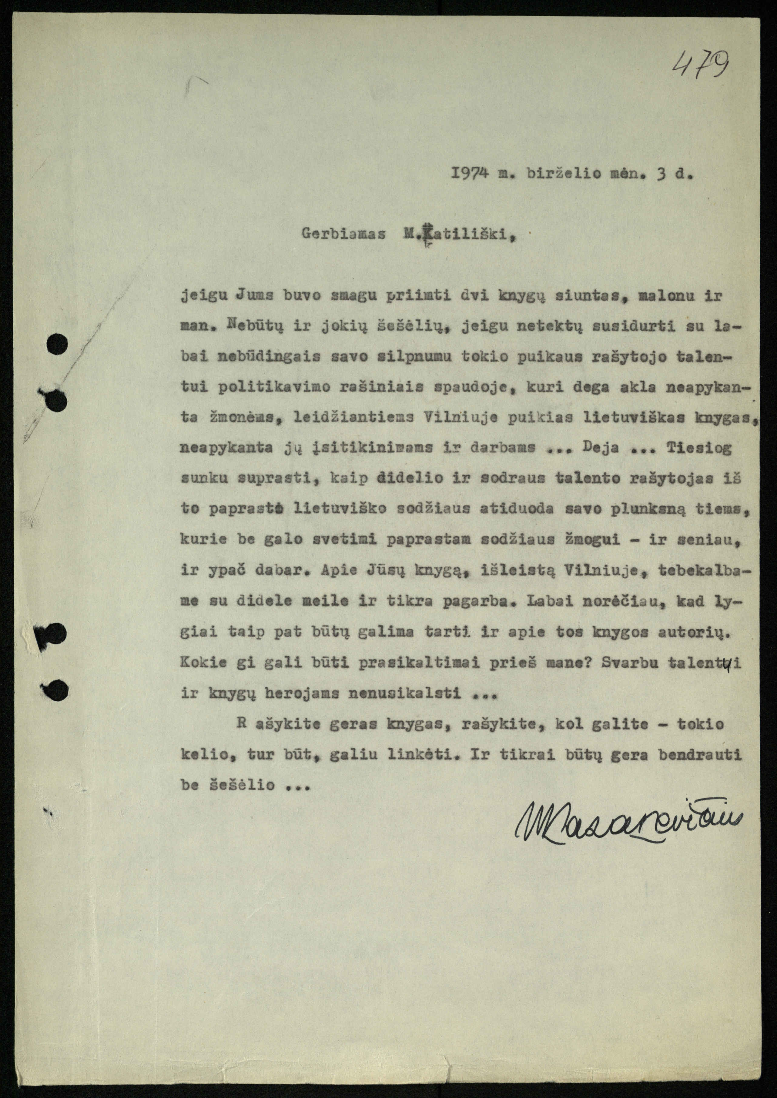 Žurnalisto Vytauto Kazakevičiaus ir rašytojų Mariaus Katiliškio, Zinaidos Nagytės-Katiliškienės korespondencija. 1966–1984 m.
