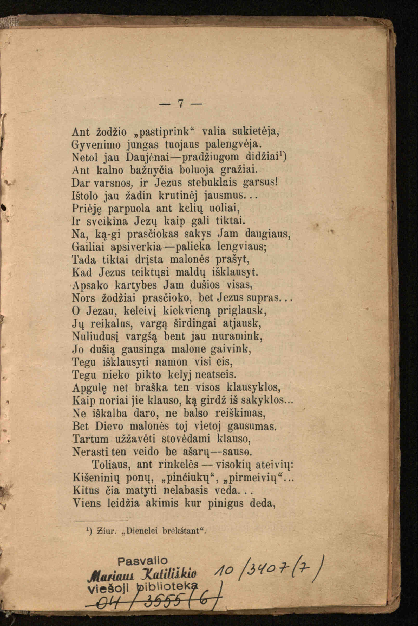 Daujėnai: eilės / A. Žalvarnio. – [S.l.]: [s.n.], 1910 (Kaunas: Saliamono Banaičio sp.). – 10 p.