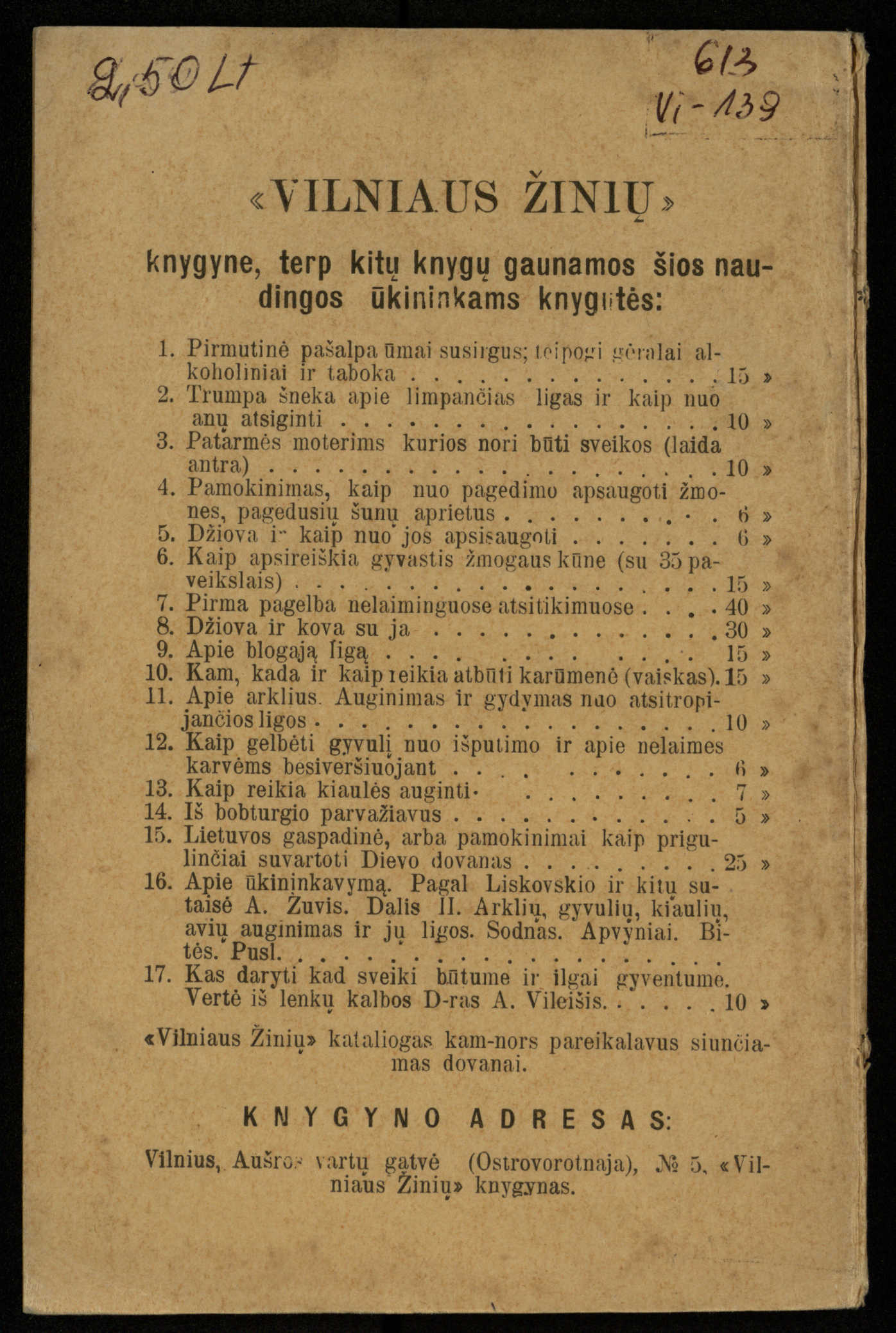 Kaip užsilaikyti pavasarį, vasarą, rudenį ir žiemą / [Otto Gotthilf Traenhart]; pagal d-rą med. L. Volbergą sutaisė d-ras A. Vileišis. – [Vilnius]: [„Vilniaus žinių“ red.], 1906 (Vilnius: „Vilniaus žinių“ sp.). – 91, [1] p.