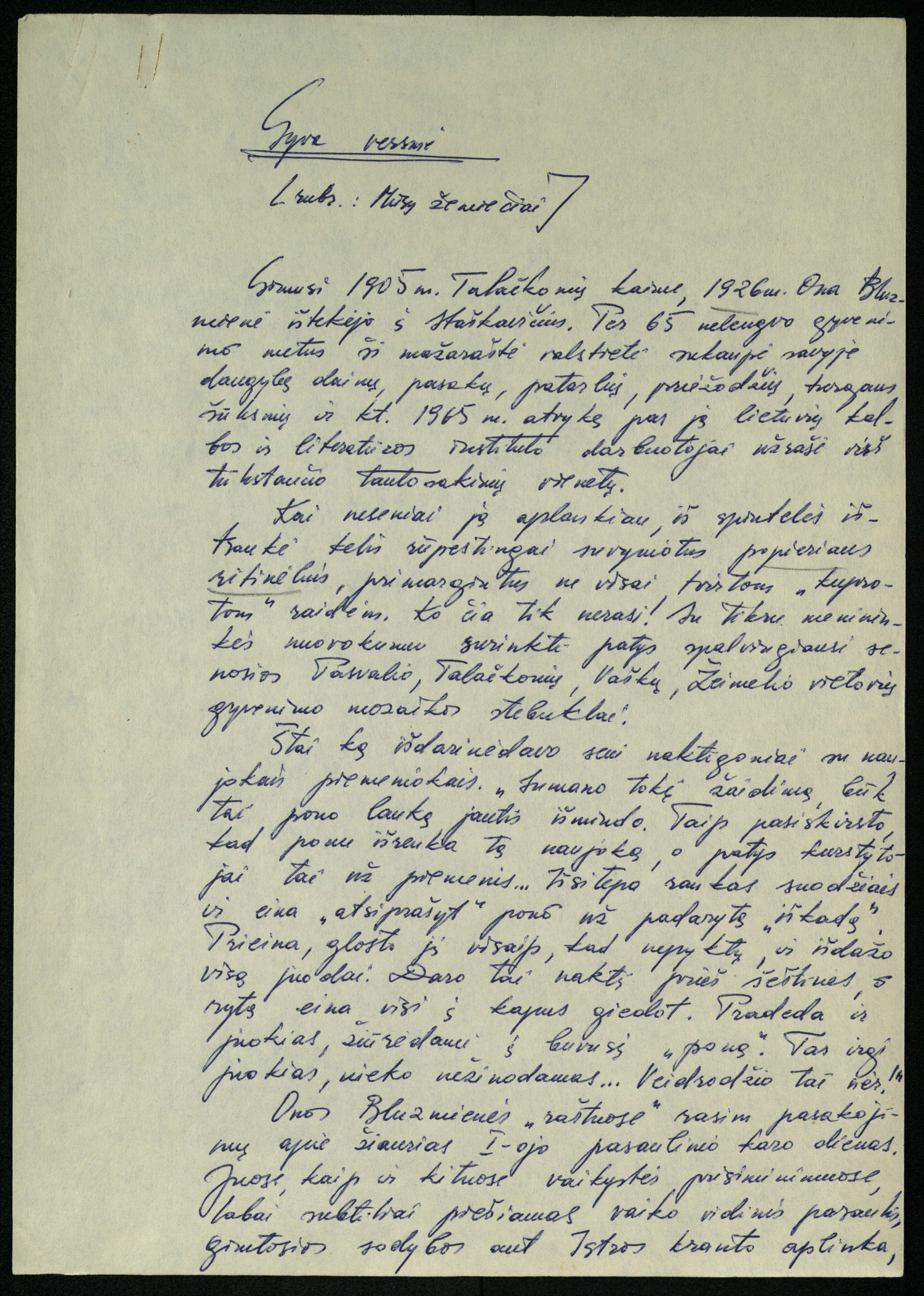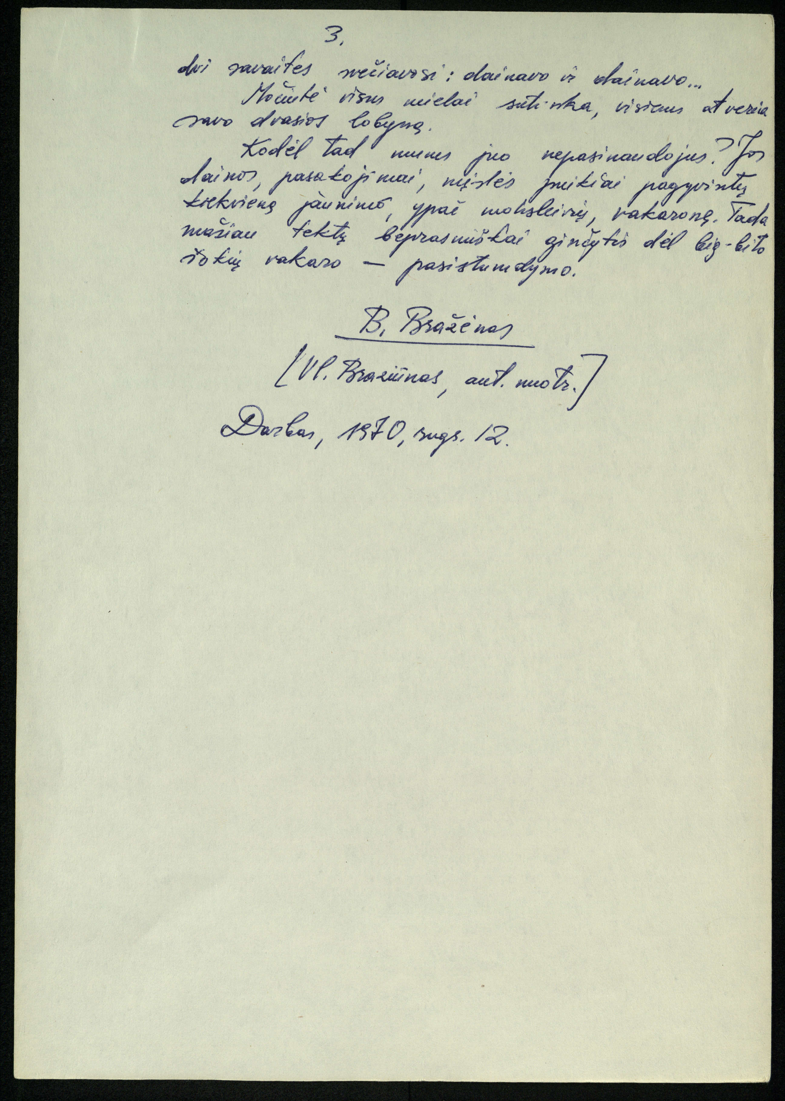Rankraštis. B. Bražėnas [Vl. Braziūnas]. Gyva versmė [rubr.: Mūsų žemiečiai]. 1970 m.