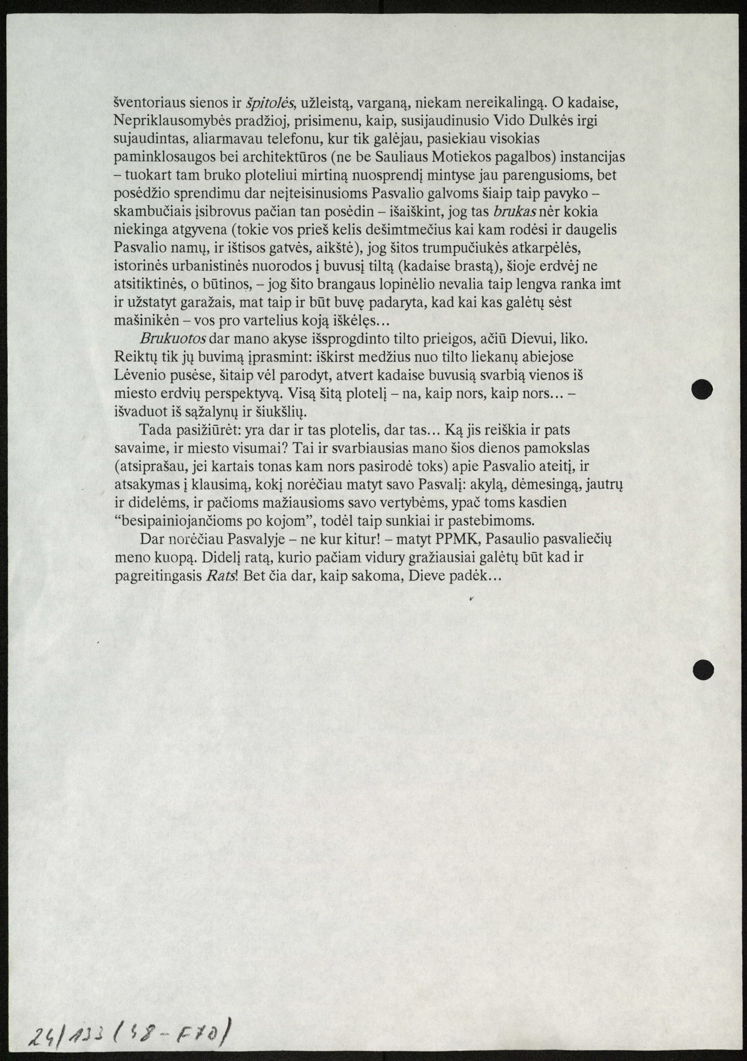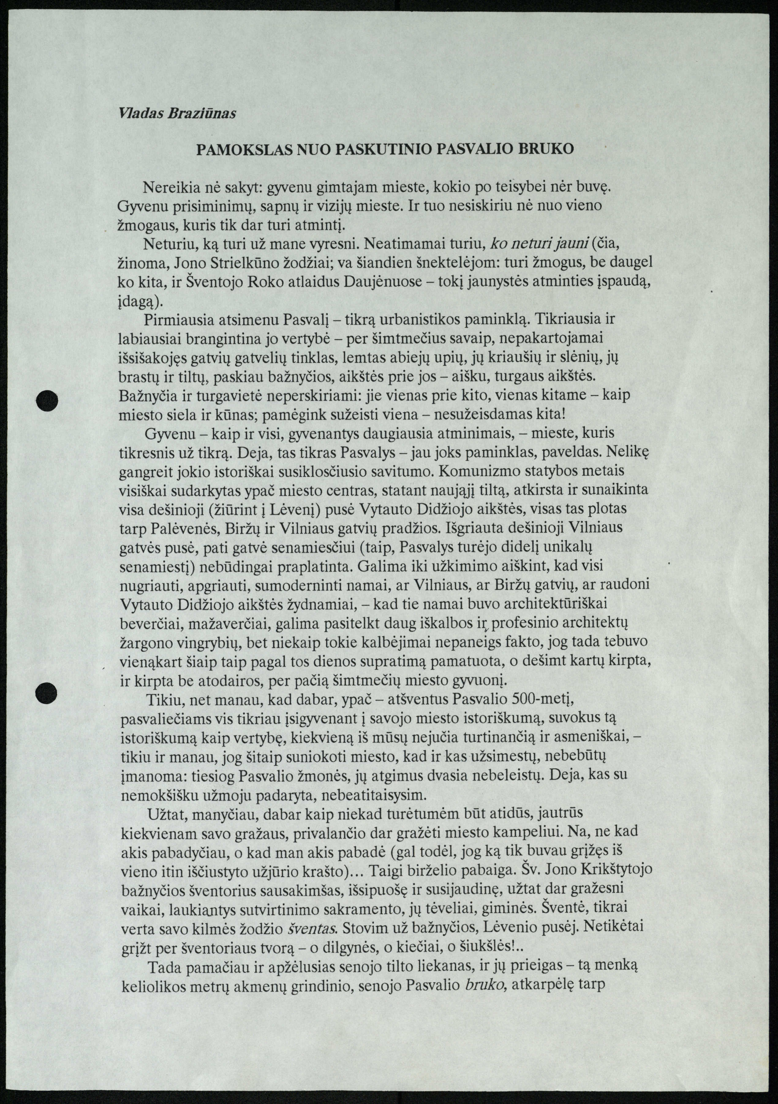 Kompiuterinis tekstas. Vladas Braziūnas. Pamokslas nuo paskutinio Pasvalio bruko