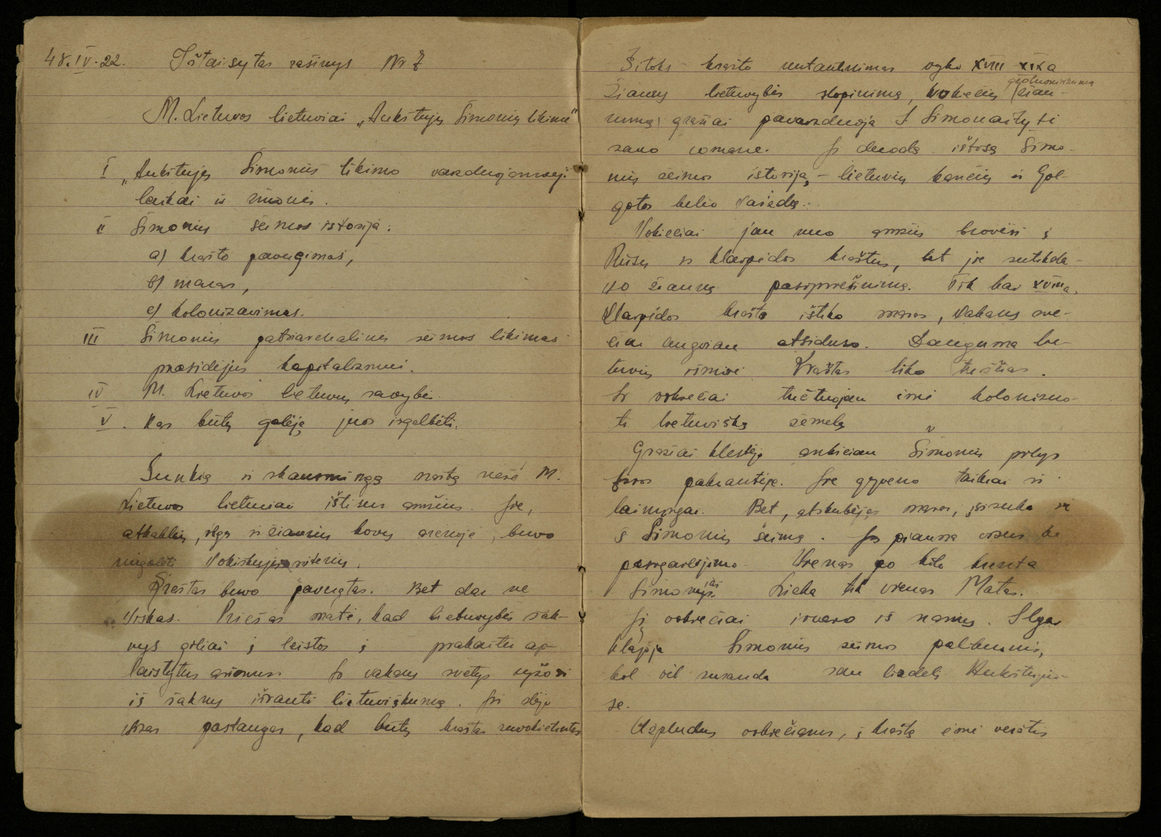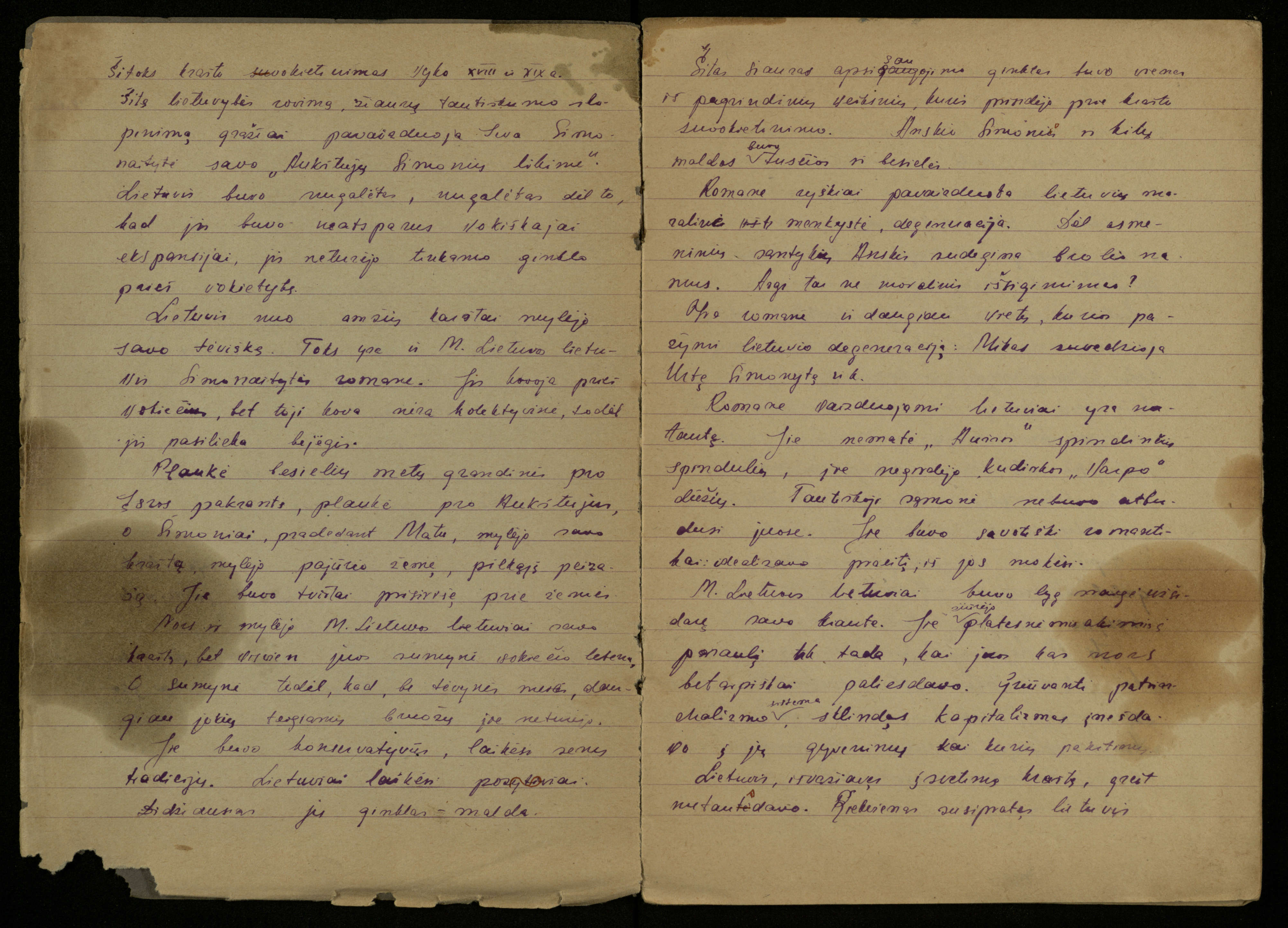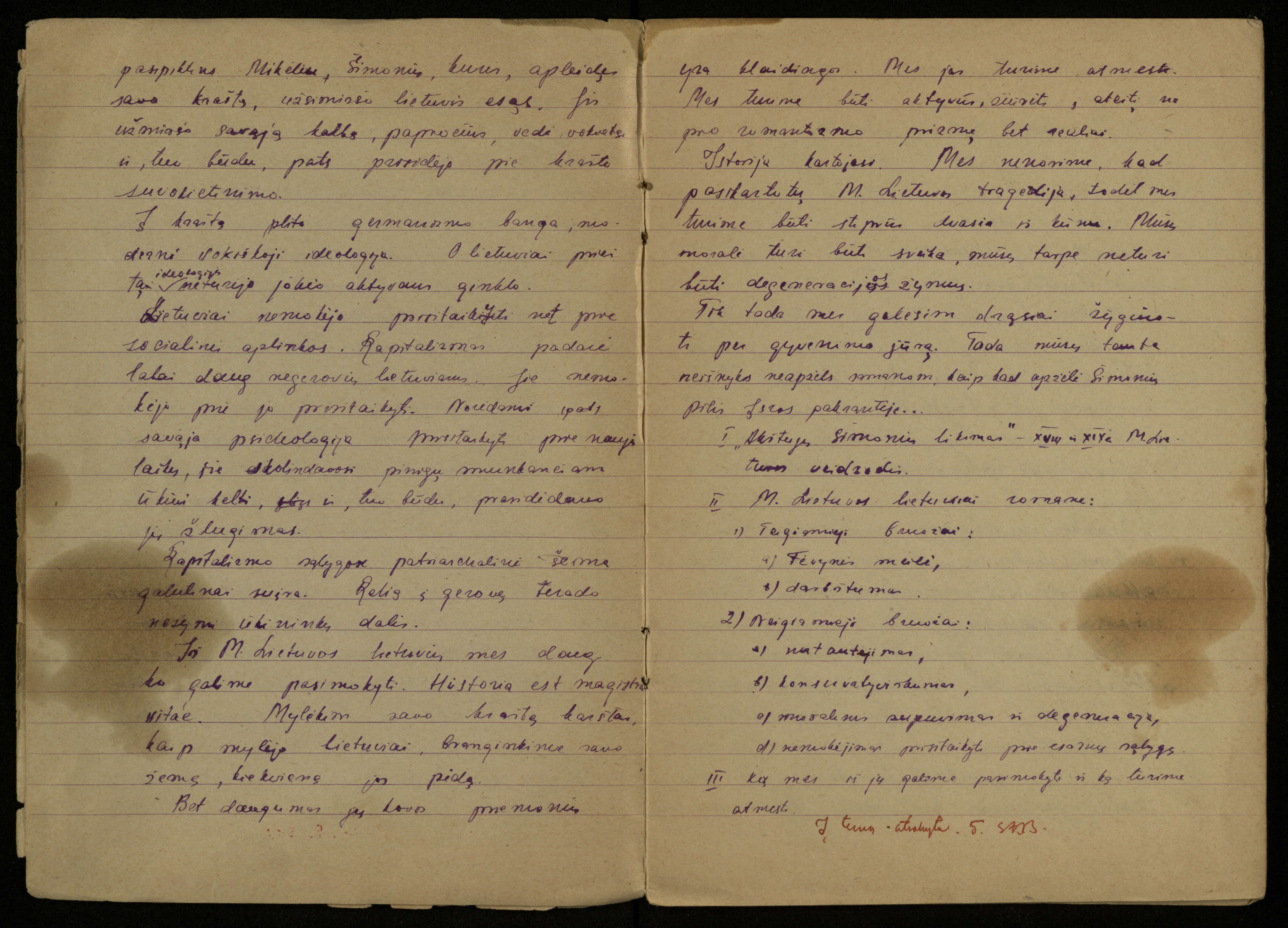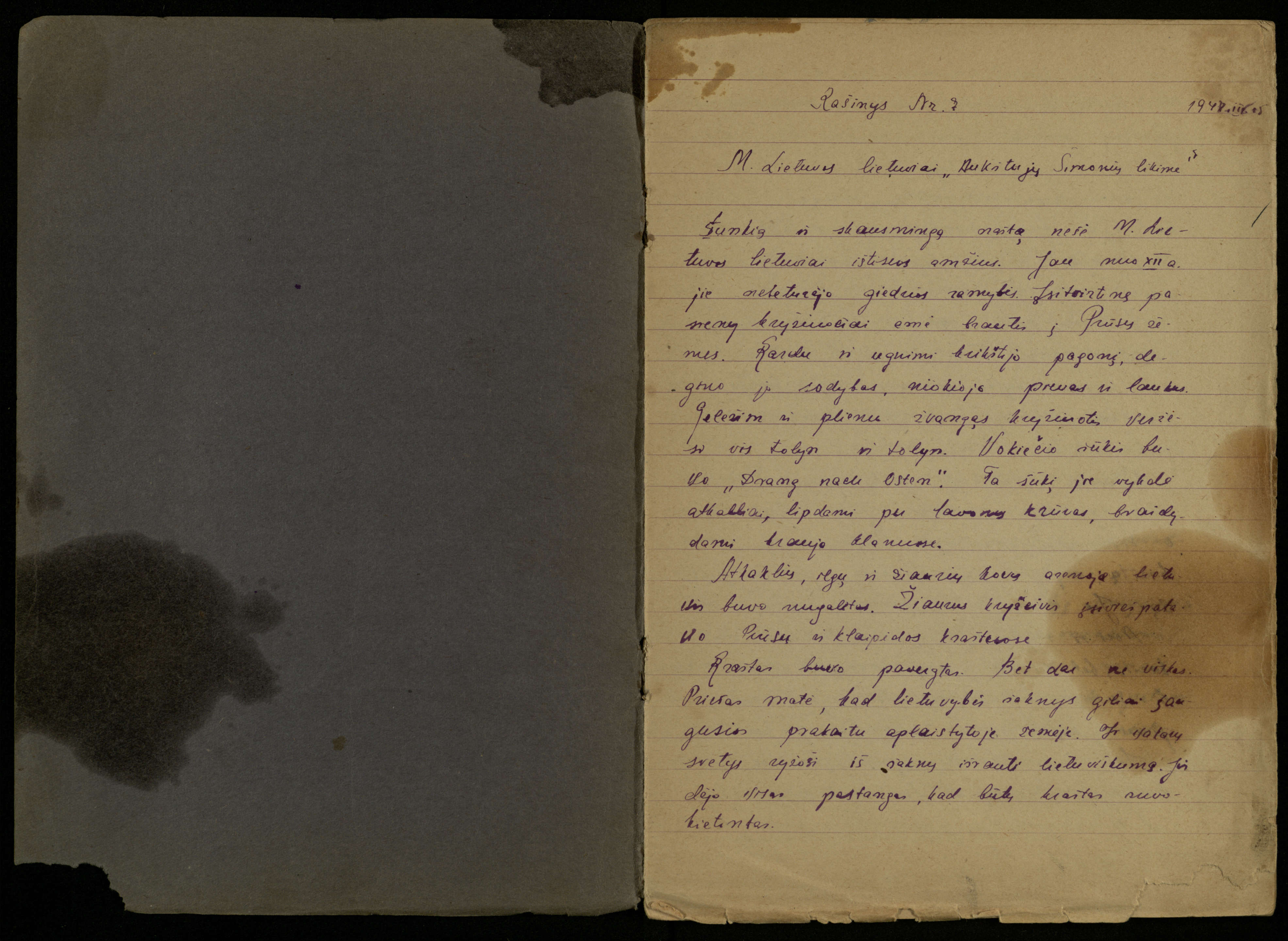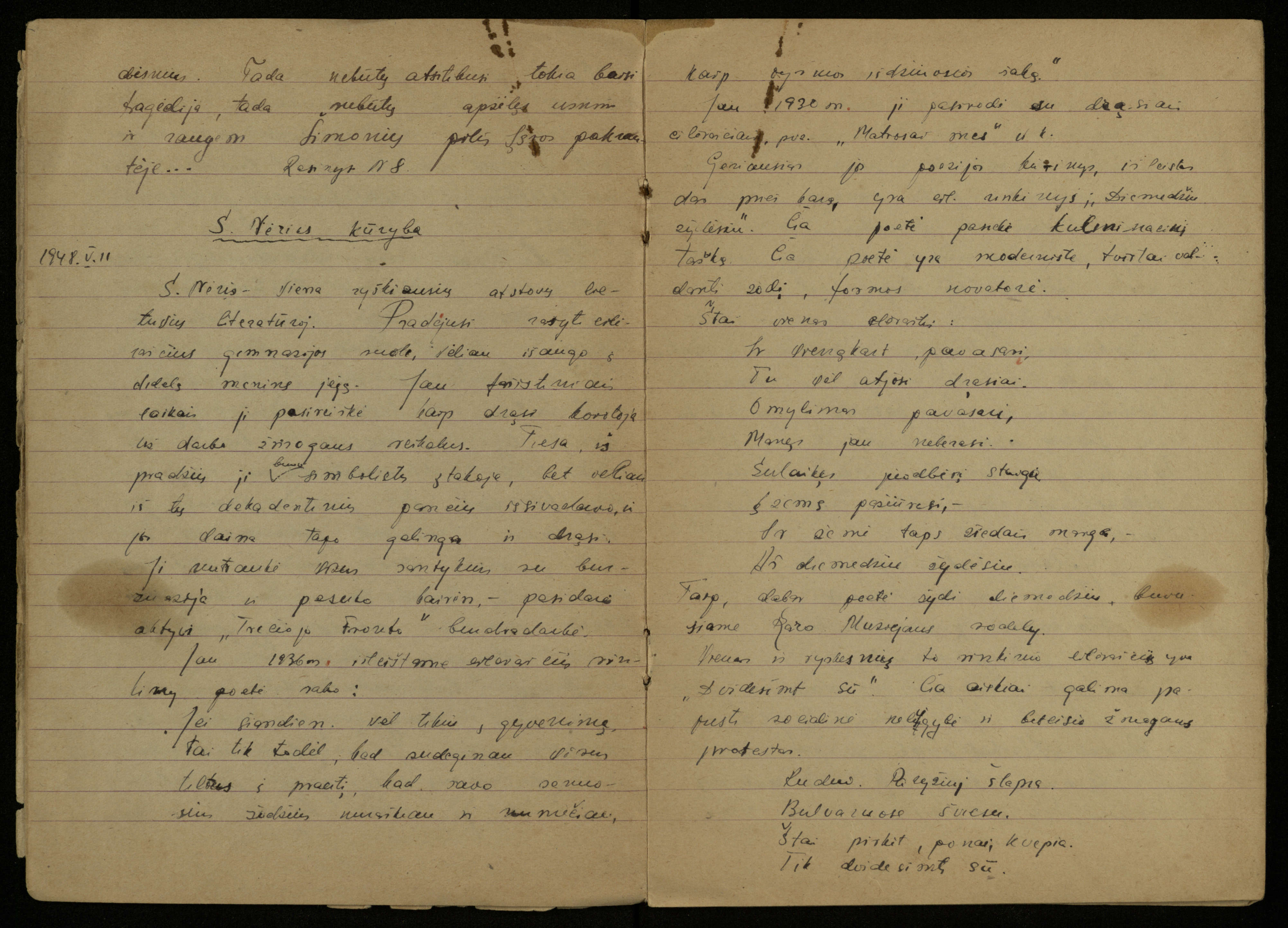 Kazimiero Pūro, VIII klasės mokinio, lietuvių kalbos ir literatūros rašomųjų darbų sąsiuvinis. Pasvalys, 1948 m. vasario 10 d.