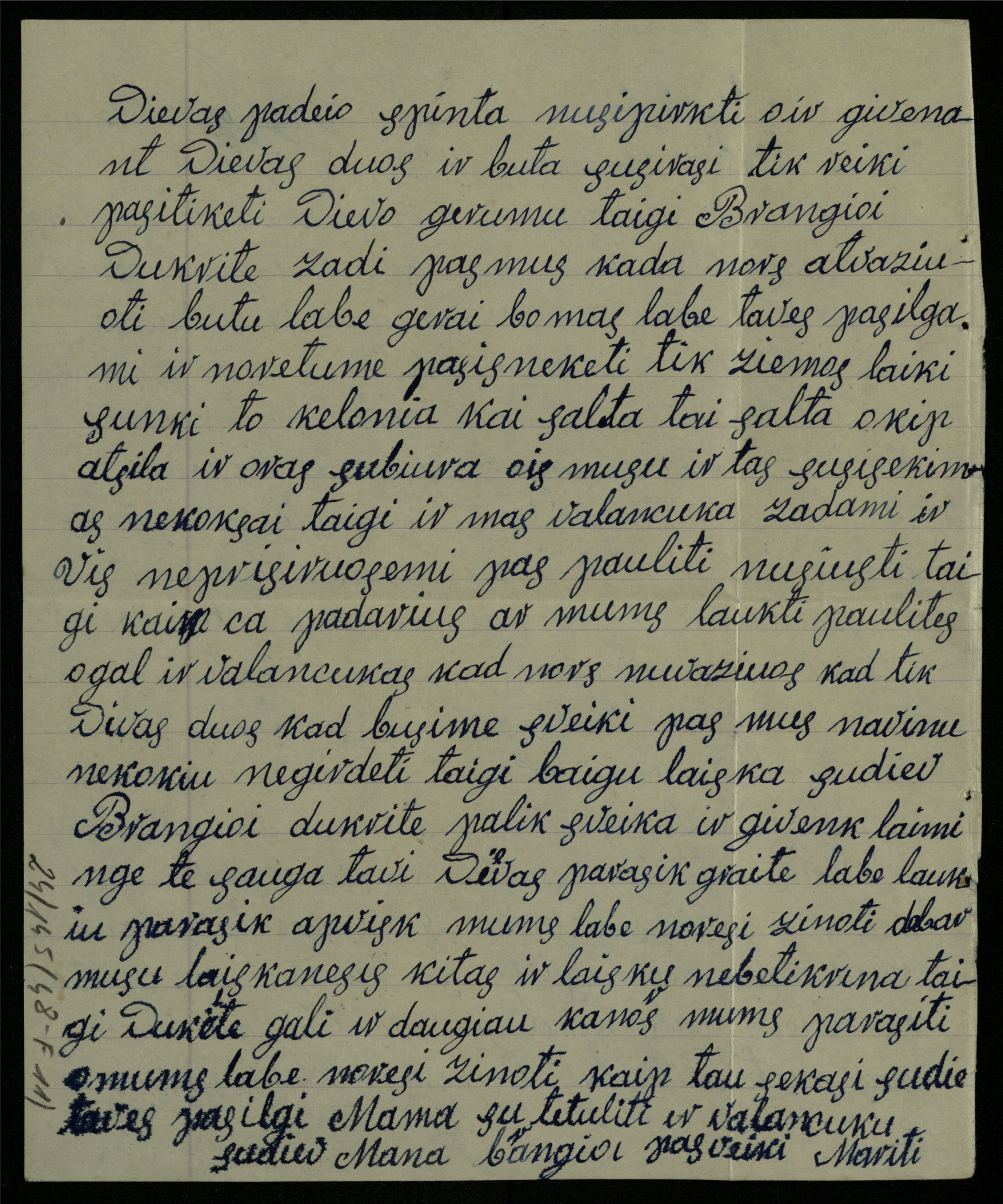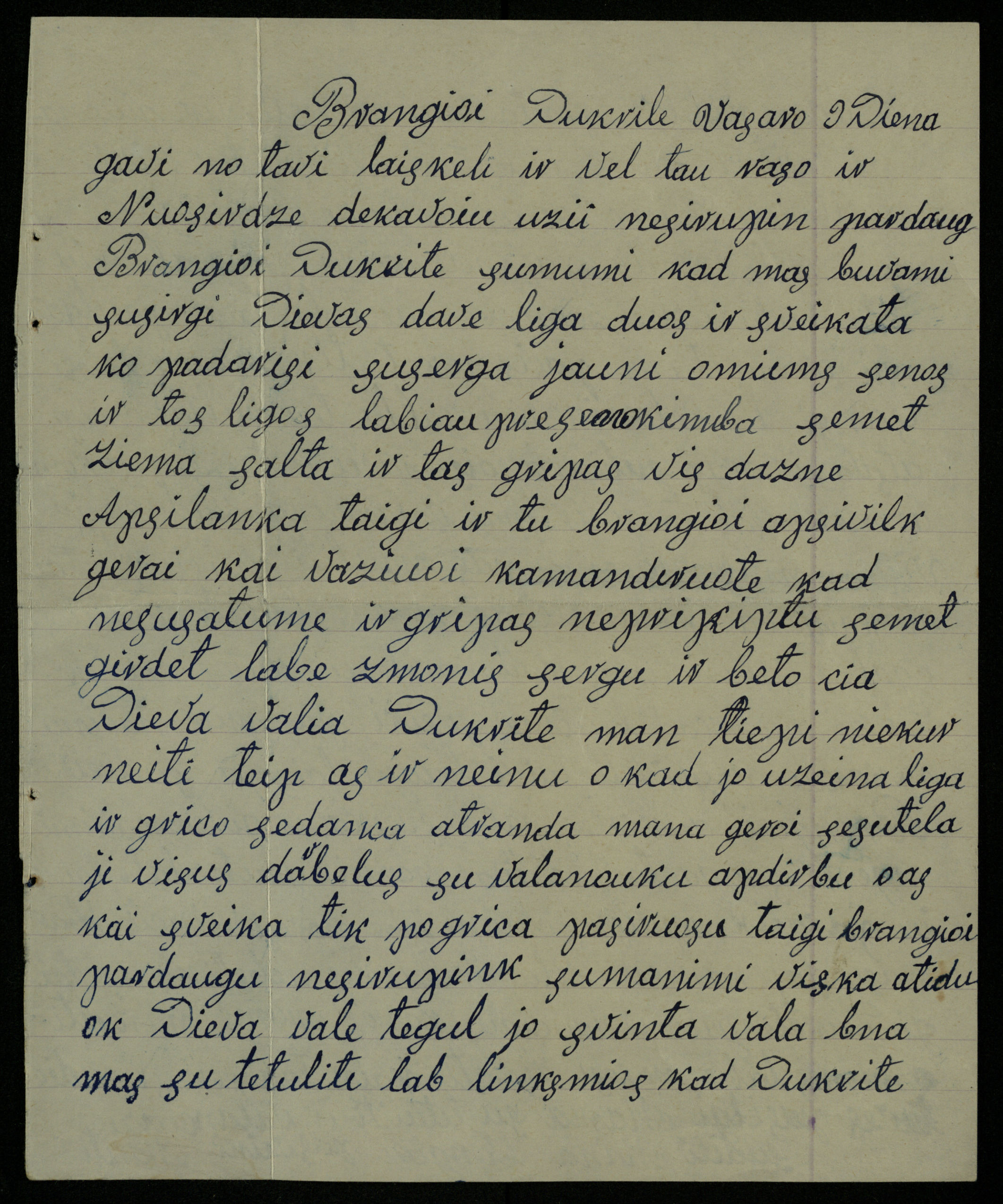Tėvų laiškas Paulei Mikelinskaitei. Vasario 9 d.