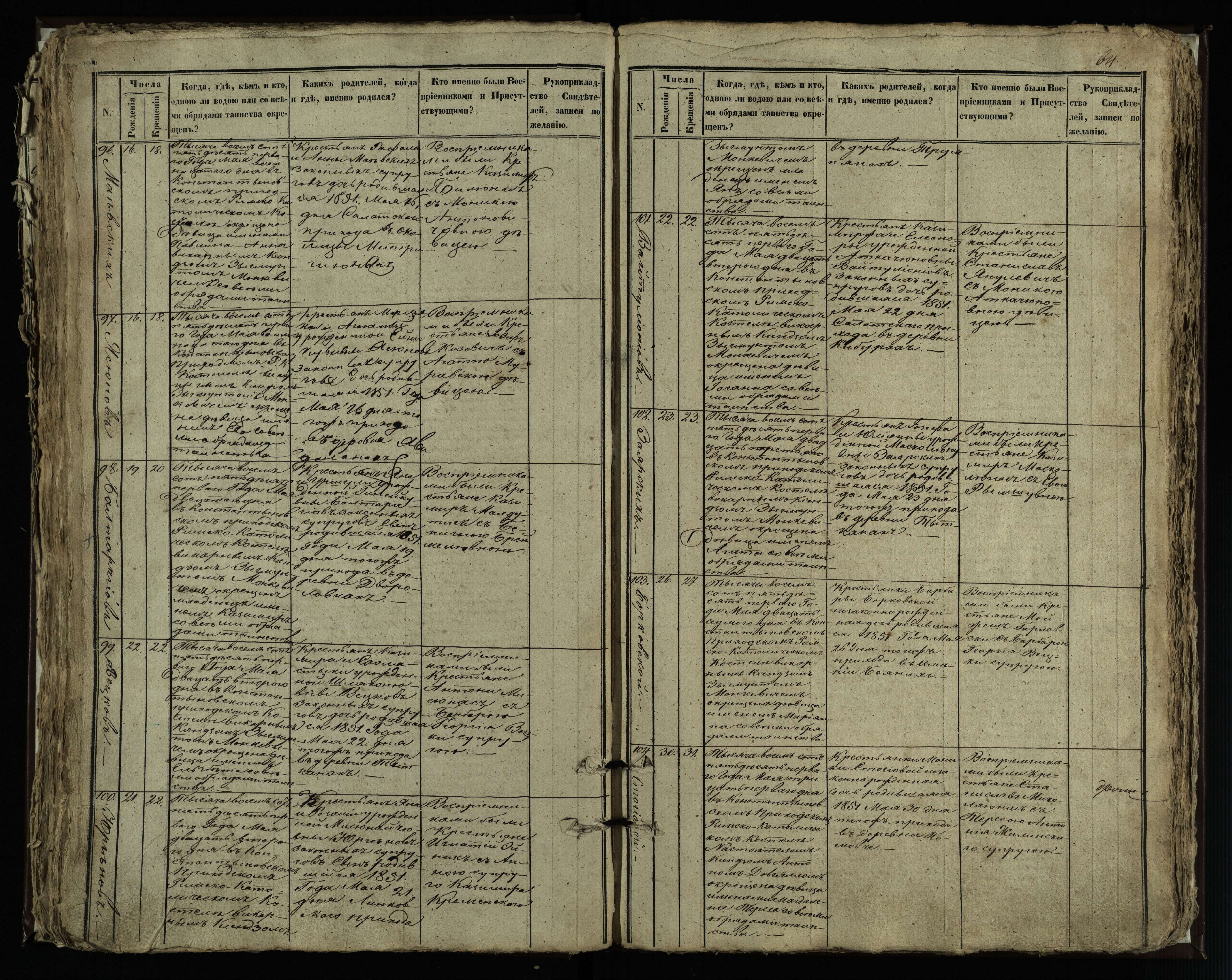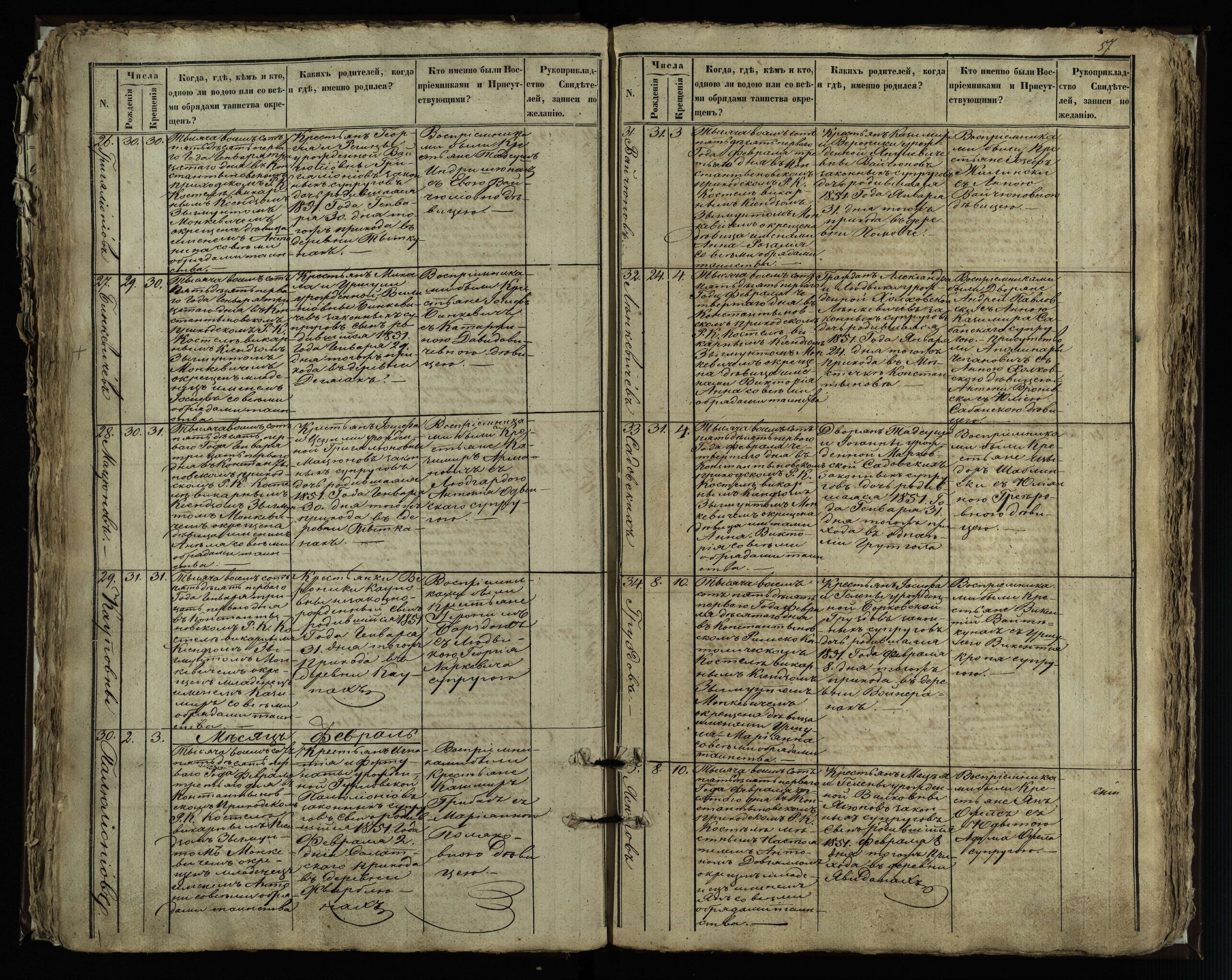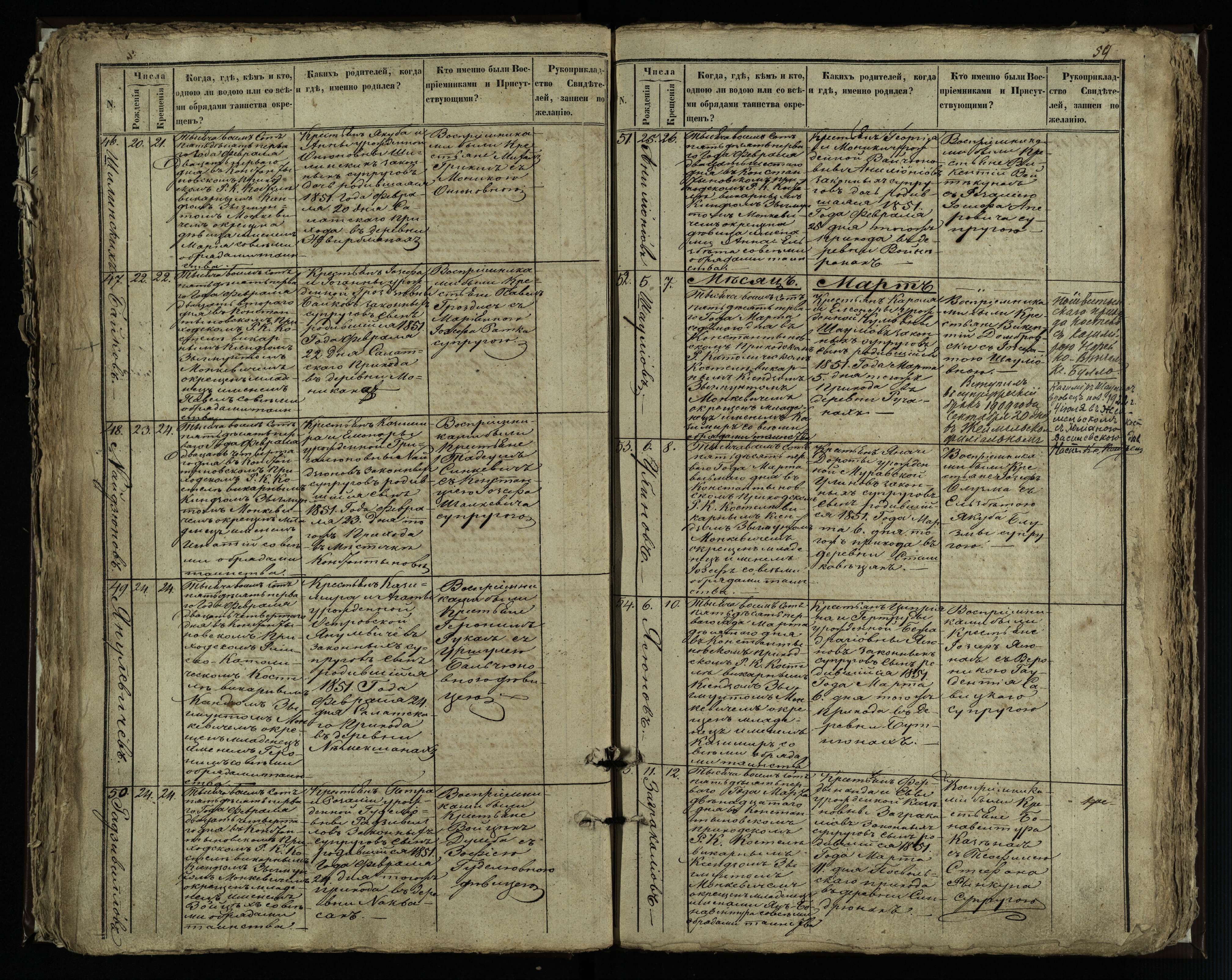 Vaškų (Konstantinavo) Romos katalikų parapijos bažnyčios 1849–1855 krikšto metrikų knyga