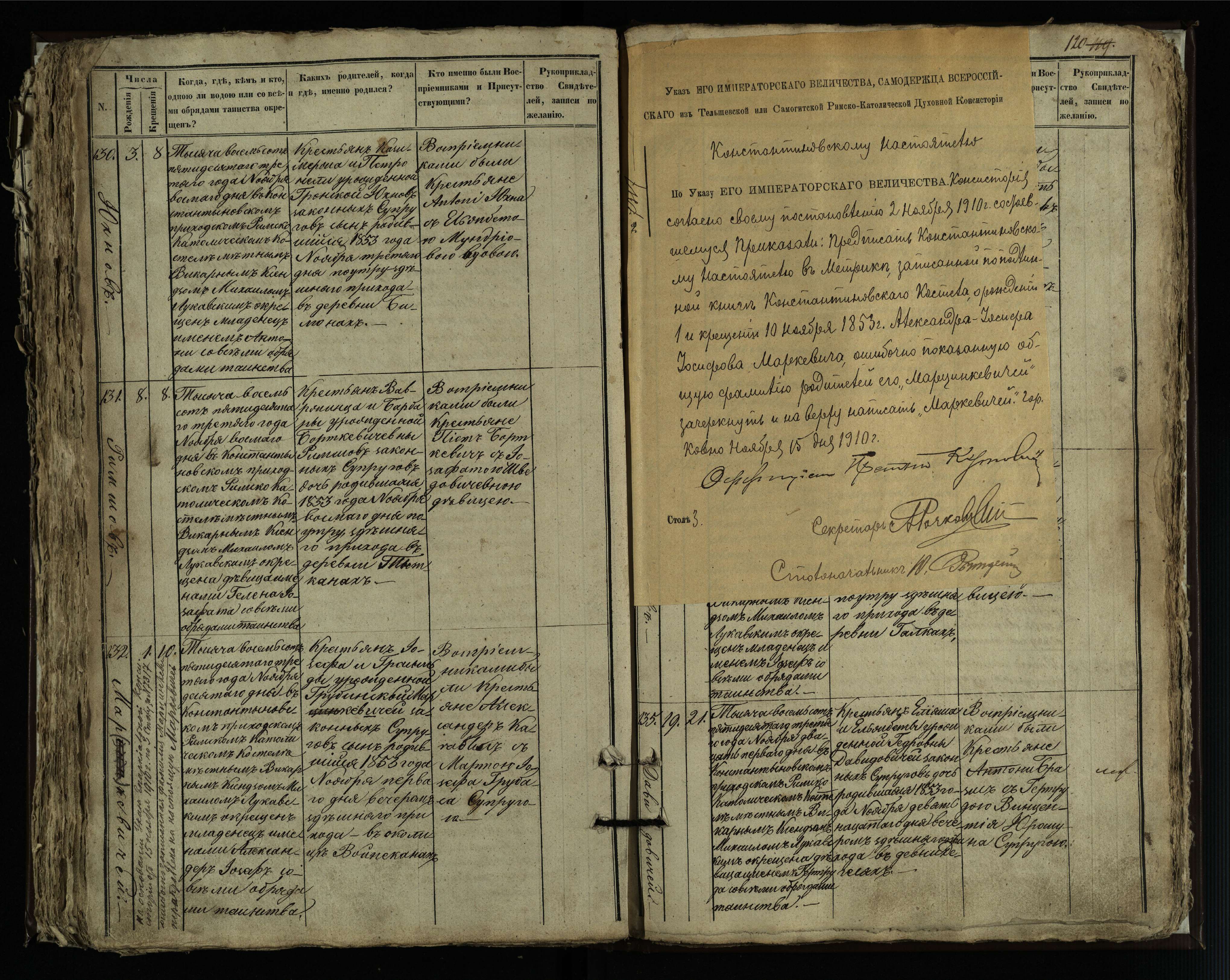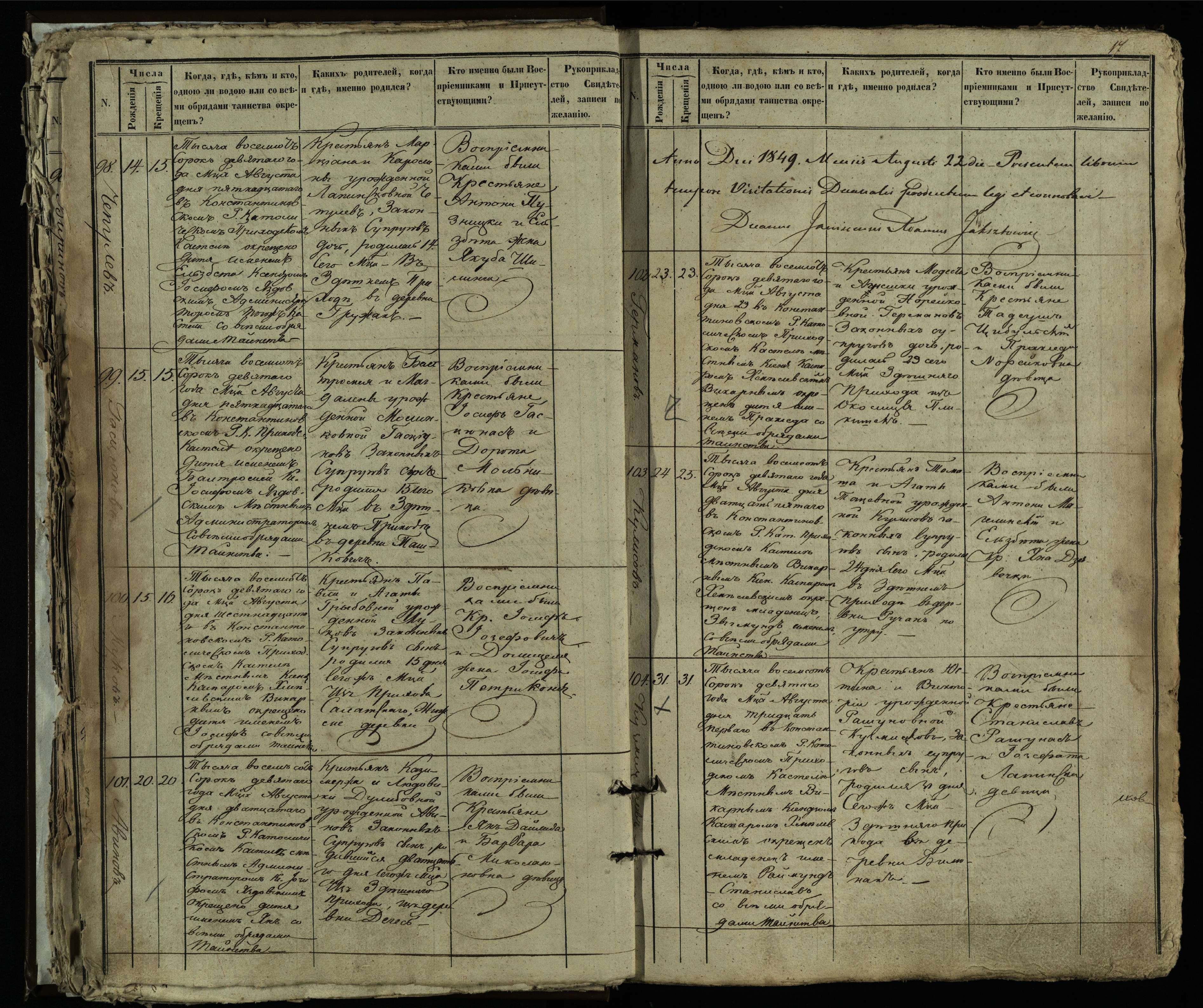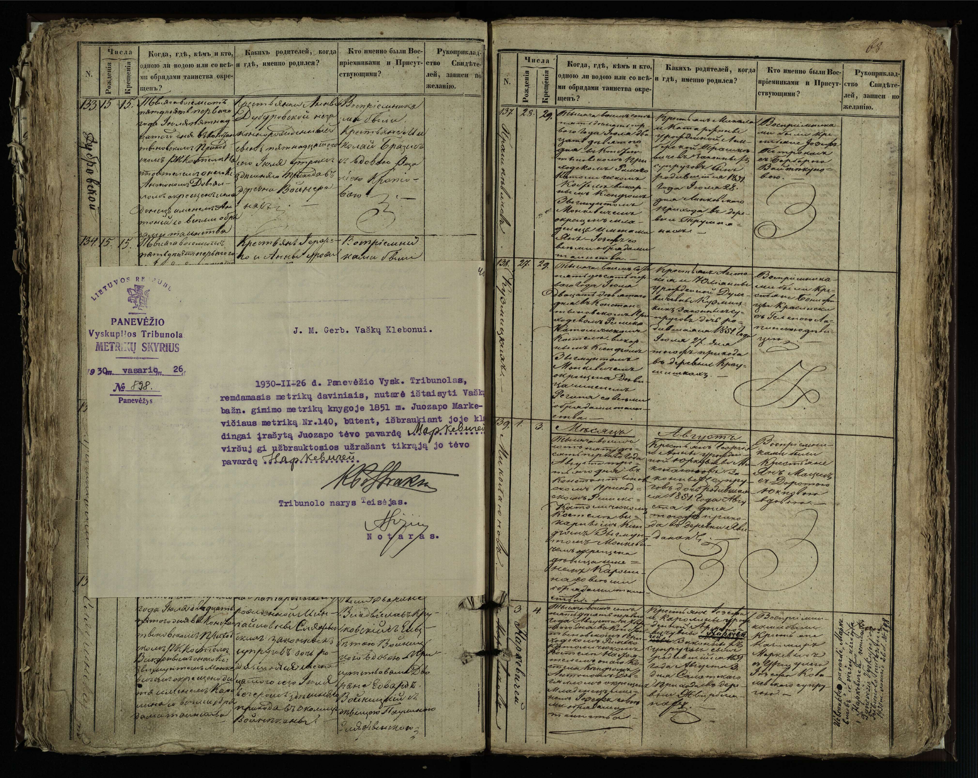 Vaškų (Konstantinavo) Romos katalikų parapijos bažnyčios 1849–1855 krikšto metrikų knyga