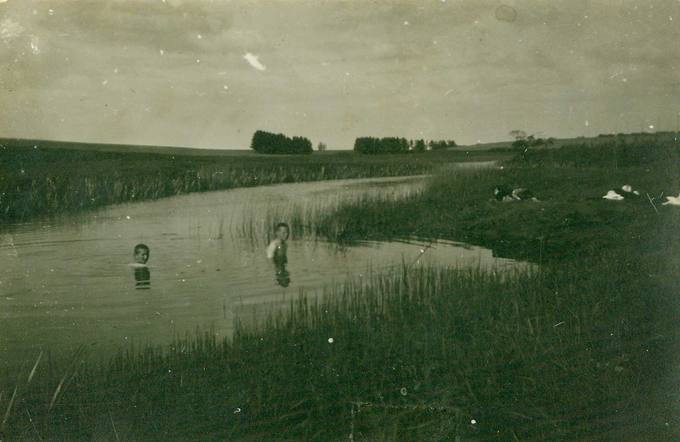 Maudynės Kruojos upelyje: Česlovas Senkevičius su broliu Vytautu