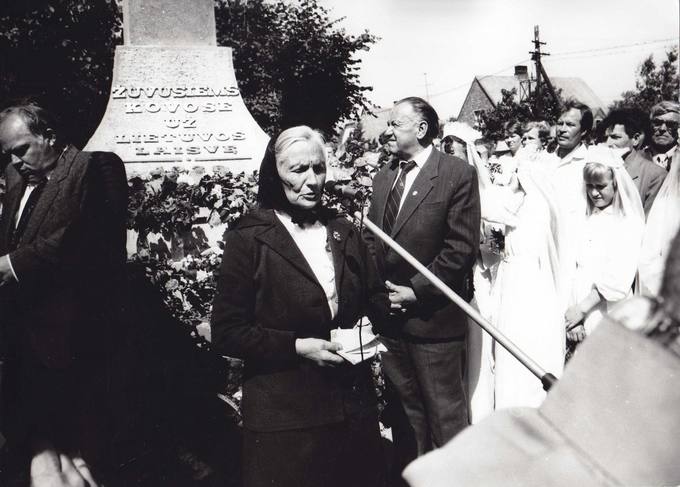Prie atstatyto Saločiuose paminklo skaitomos eilės