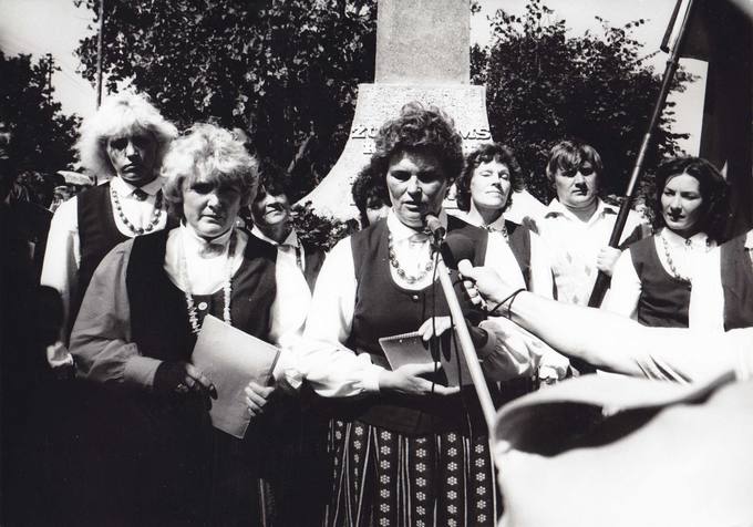 Grupė Sąjūdžio žmonių prie Saločių miestelyje atstatyto paminklo žuvusiems už laisvę