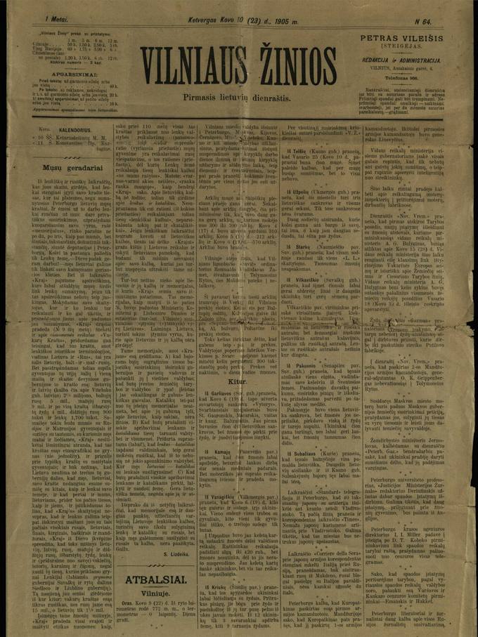 Vilniaus žinios : pirmasis lietuvių dienraštis. 1905, nr. 64