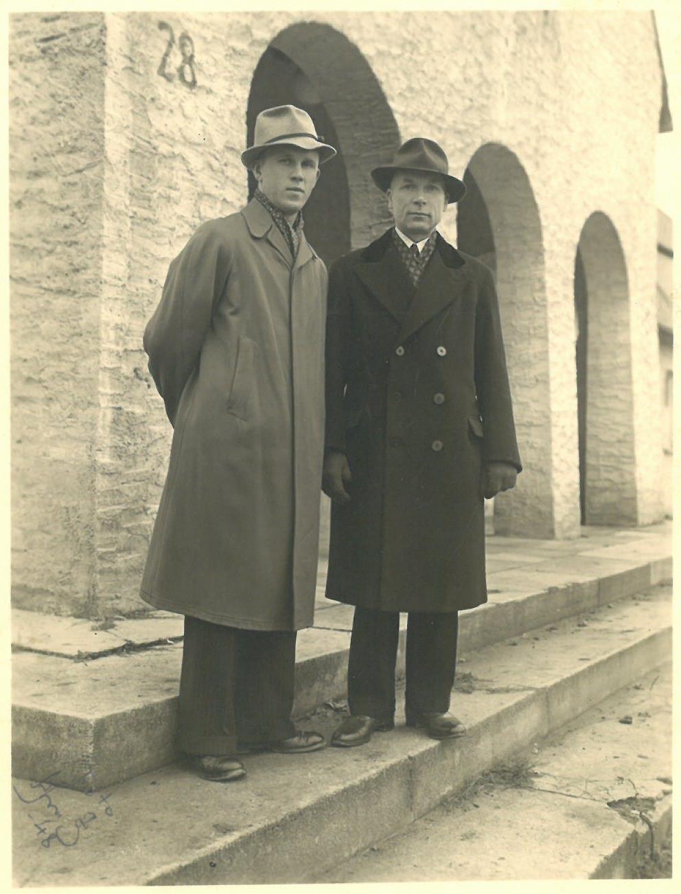 Kazys Balčiūnas (antras iš kairės) su draugu Lietuvoje. 1924 m.