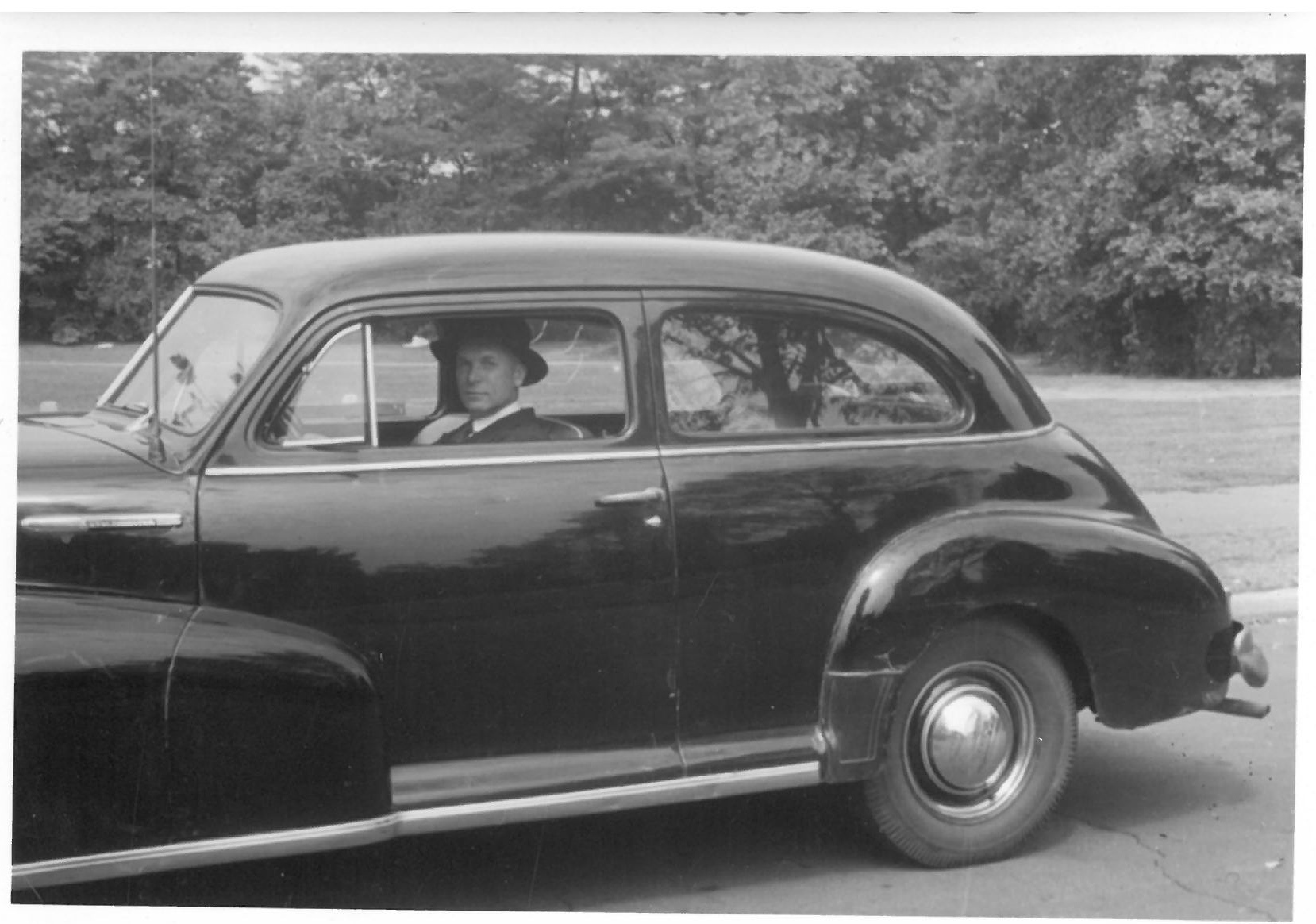 Kazys Balčiūnas prie automobilio vairo. Lemontas, Čikagos priemiestis, JAV