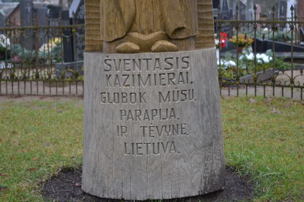 Sculpture to the Lithuanian patron Saint Casimir in Pušalotas churchyard