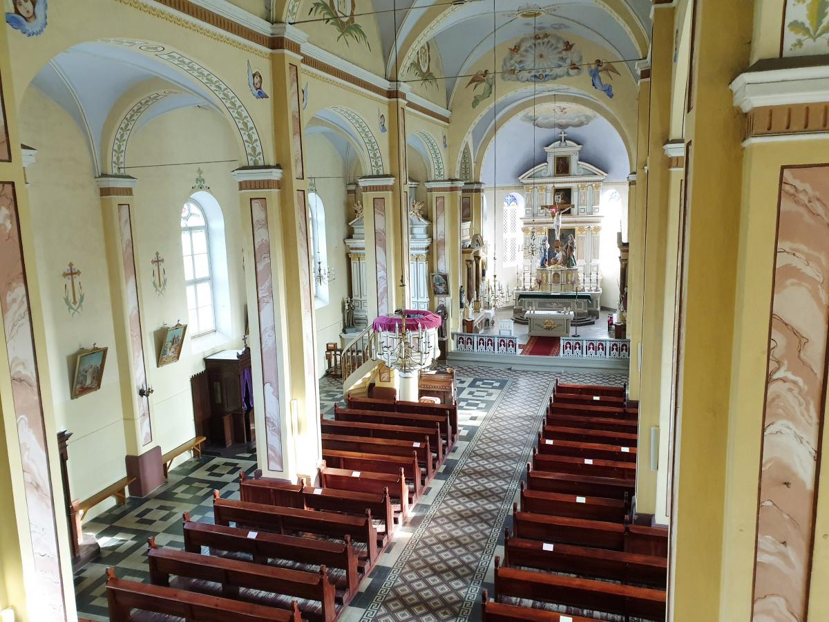 Dabartinė bažnyčia ir medinė varpinė iškilo 1881 m. Senuosius varpus per Pirmąjį pasaulinį karą išsivežė rusai ir vokiečiai. Šiandien bažnyčioje yra trys varpai: du kabo vakariniame bokšte, o vienas įrengtas ant stogo.